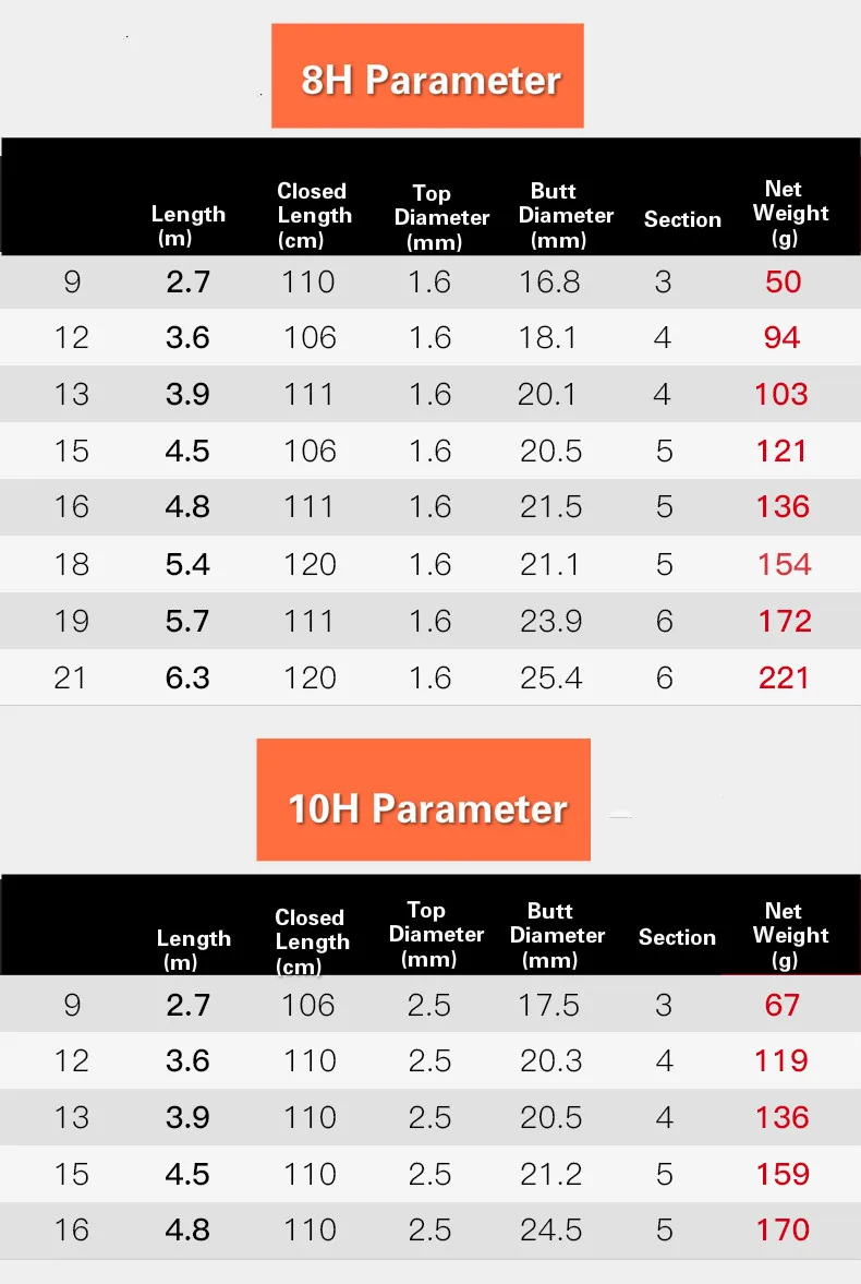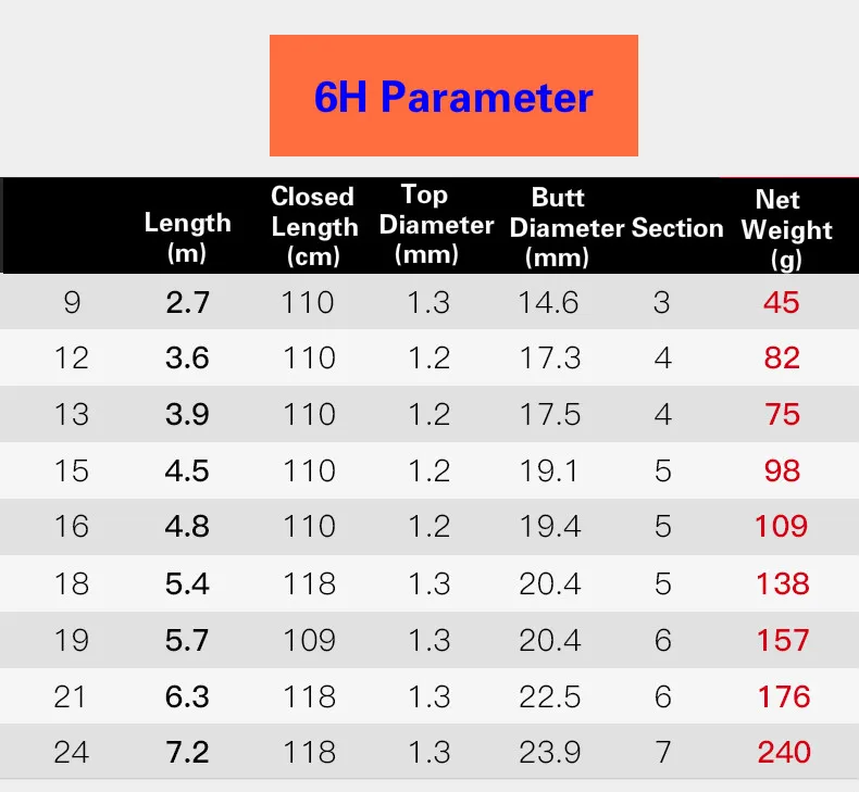 5. no hay diferencia entre los tres tipos de cañas de pescar excepto por la dureza. Dureza: 10H 8H 6H