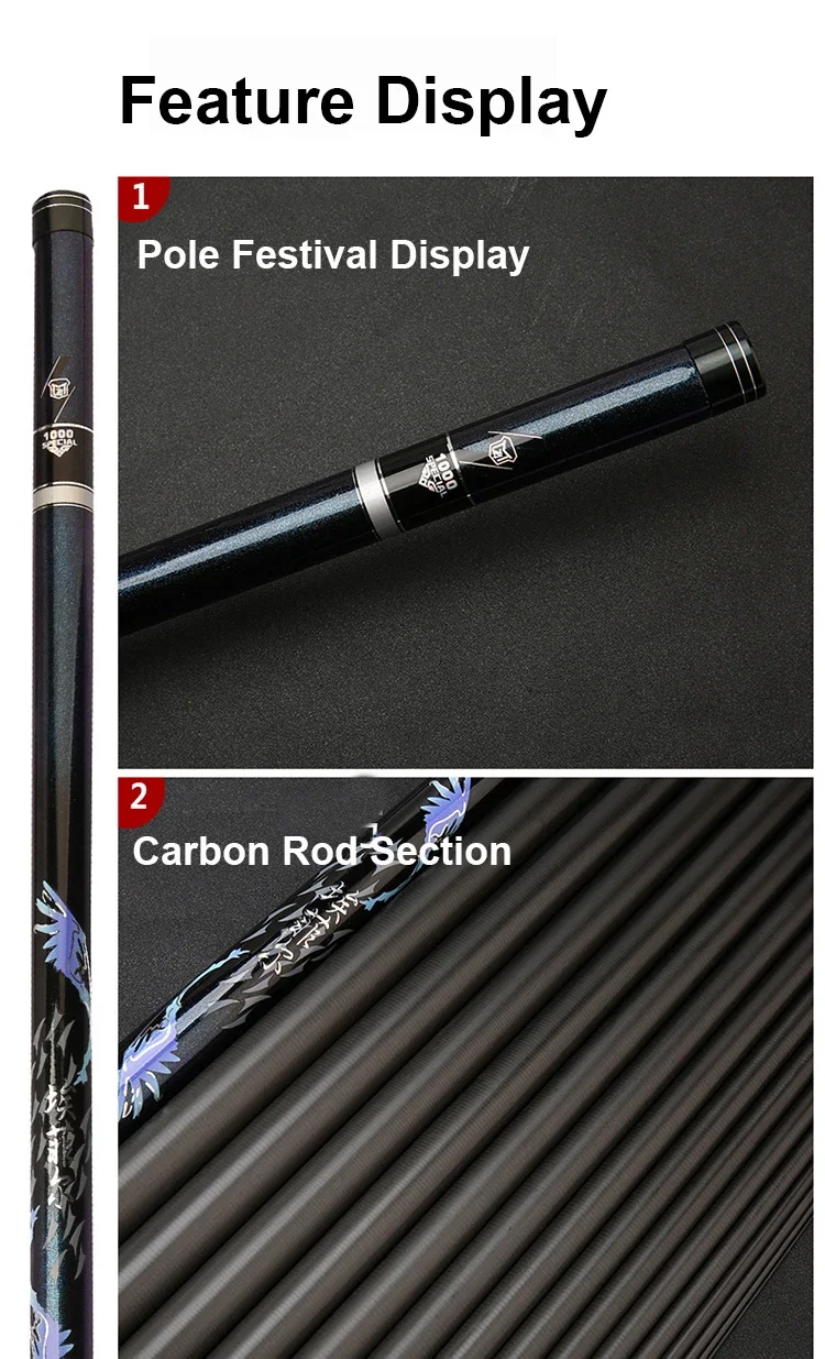 Caña de pescar de carbono de 8m, 9m, 10m, 11m, 12m, 10kg encima, caña de lanzamiento de larga distancia superdura, caña telescópica de corriente de alta calidad