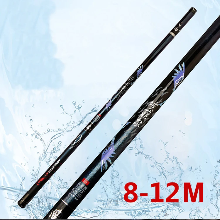 Caña de pescar de carbono de 8m, 9m, 10m, 11m, 12m, 10kg encima, caña de lanzamiento de larga distancia superdura, caña telescópica de corriente de alta calidad