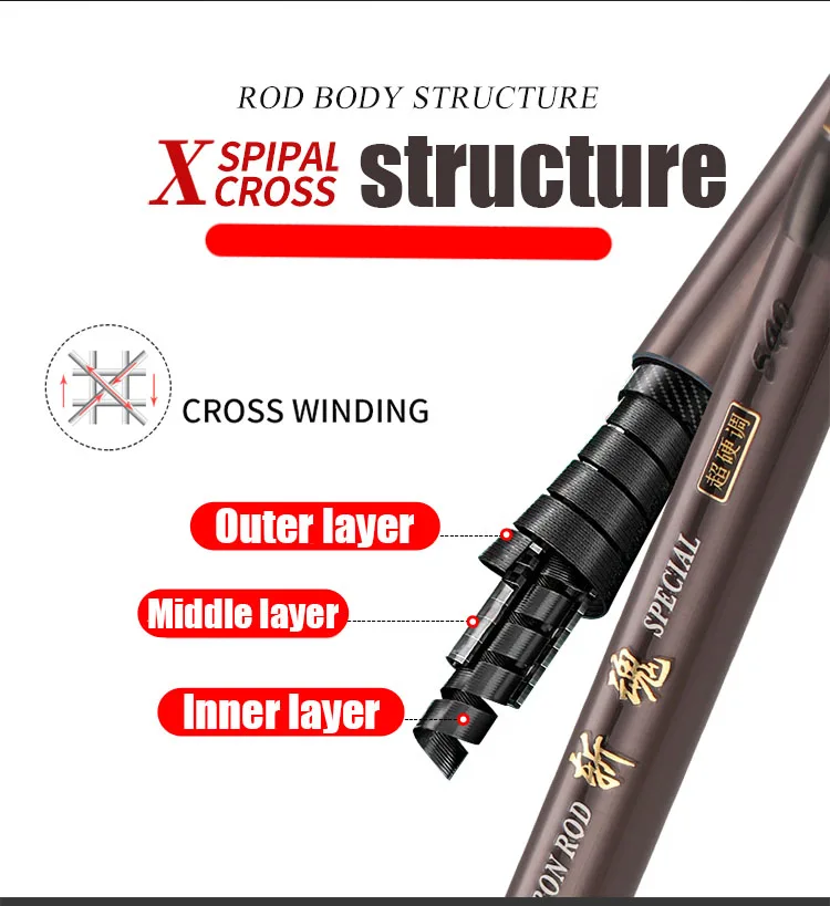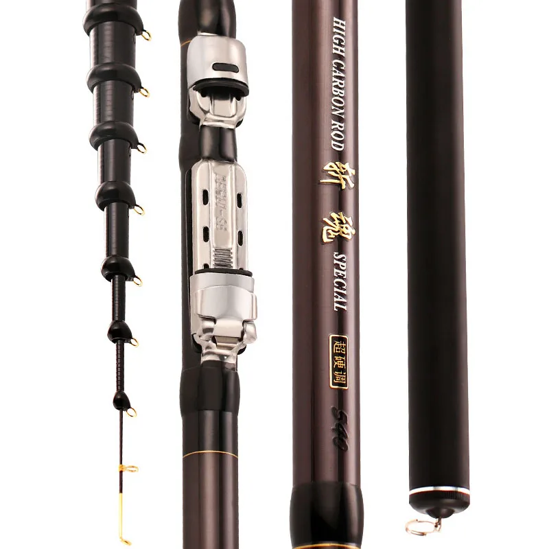 Caña de pescar de carbono de alta calidad, 4,5 M, 5,4 M, 6,3 M, 7,2 M, caña de pescar telescópica de tres posiciones, aparejos de pesca giratorios, caña de mar