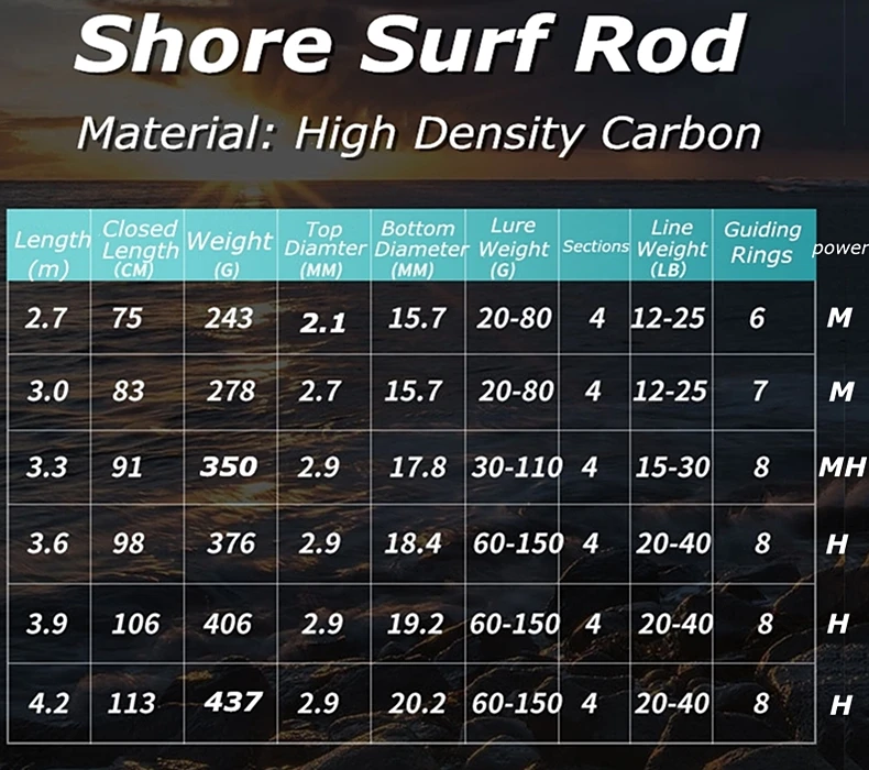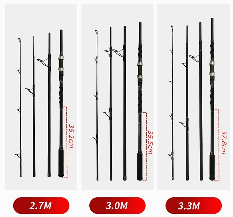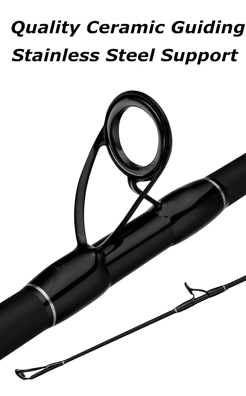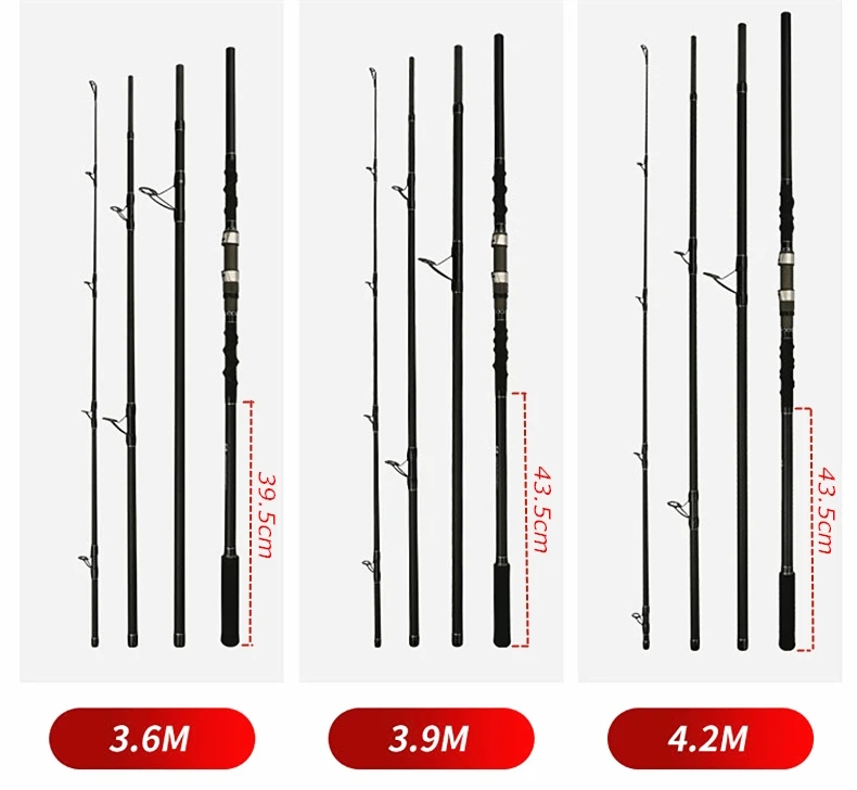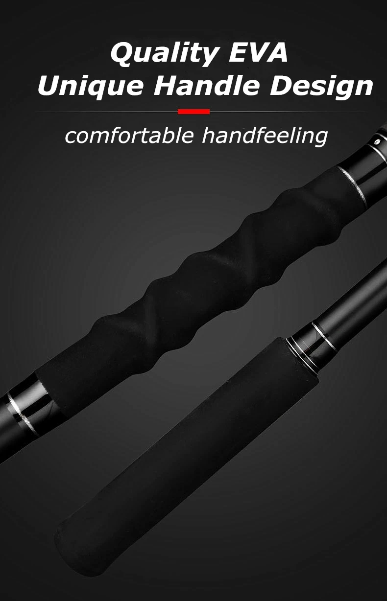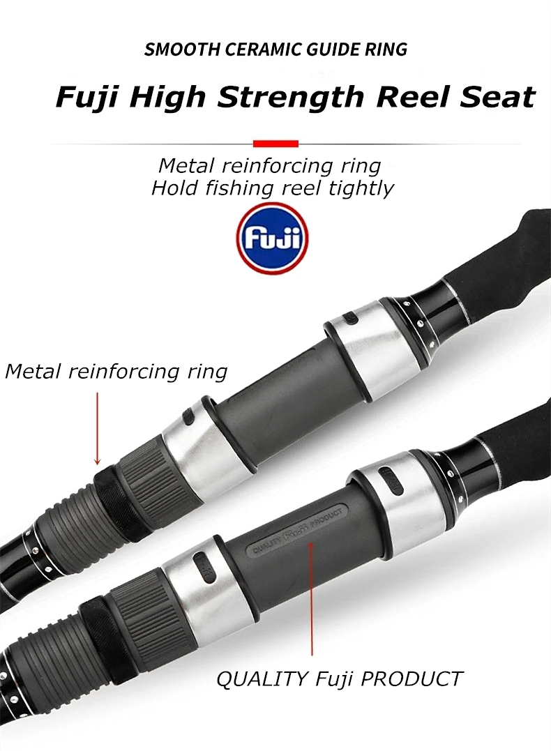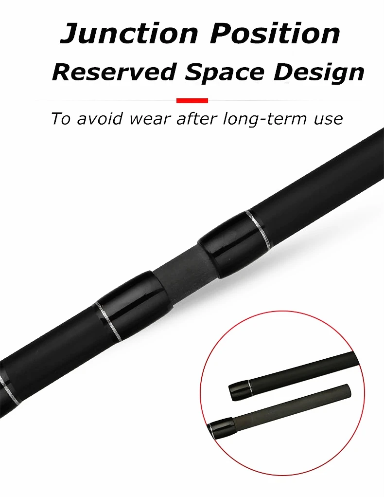 La fibra de carbono se distribuye uniformemente en las secciones, hace que la fuerza sea uniforme, evitando roturas accidentales al pescar.