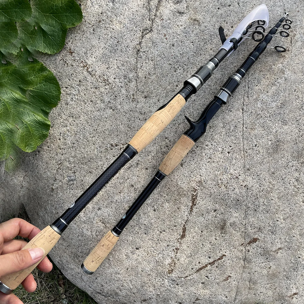 Caña de pescar de carbono de fundición giratoria telescópica 1,8 m/2,1 m/2,4 m/2,7 m/3,0 M caña de viaje portátil Jigging cebo 10-20g aparejos de pesca