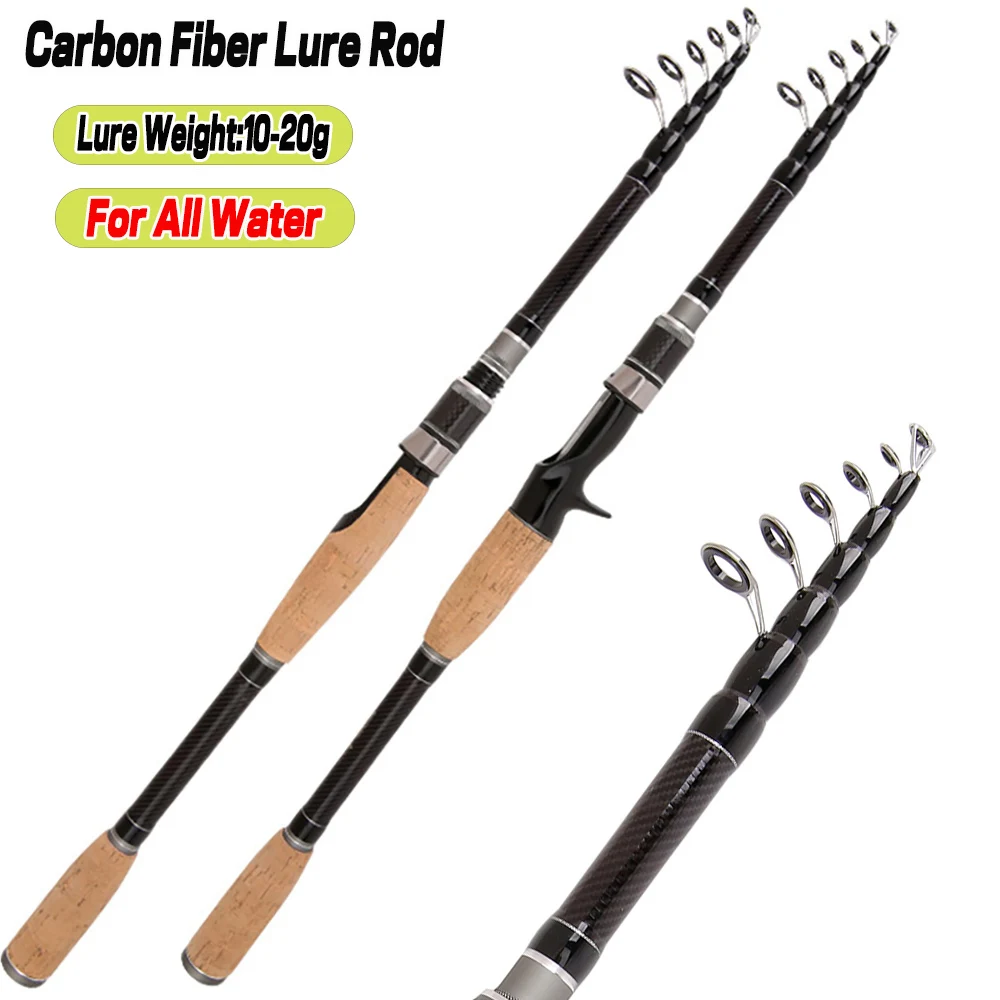 Caña de pescar de carbono de fundición giratoria telescópica 1,8 m/2,1 m/2,4 m/2,7 m/3,0 M caña de viaje portátil Jigging cebo 10-20g aparejos de pesca