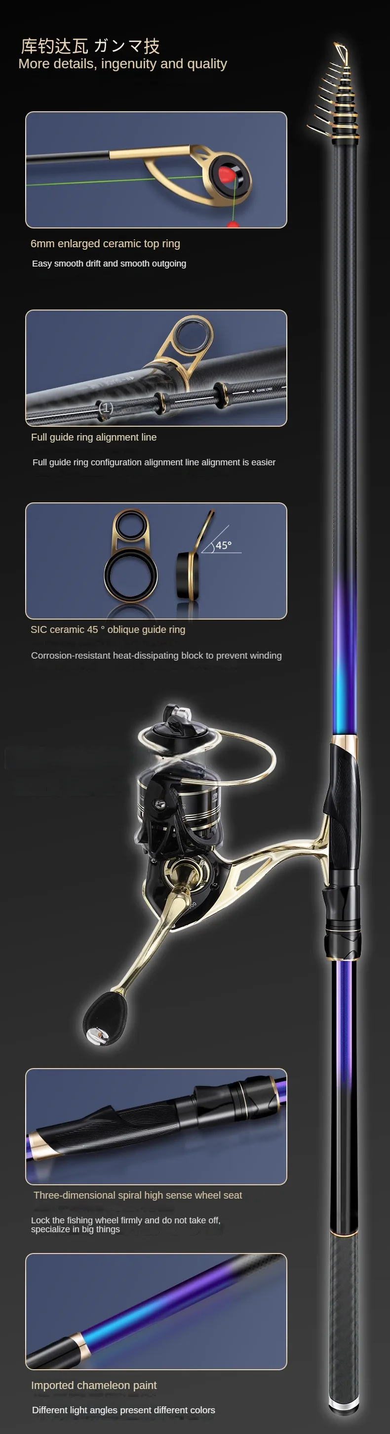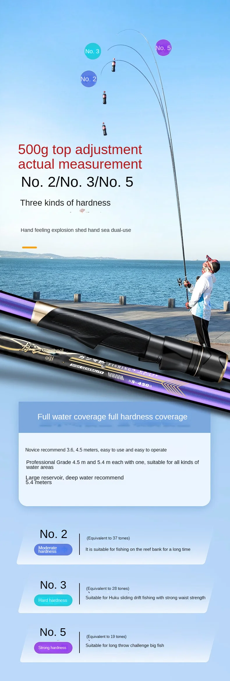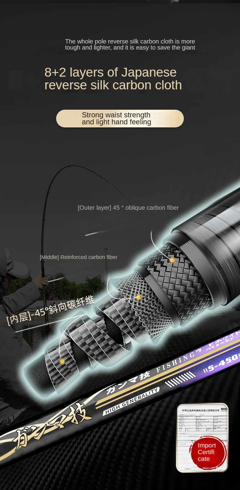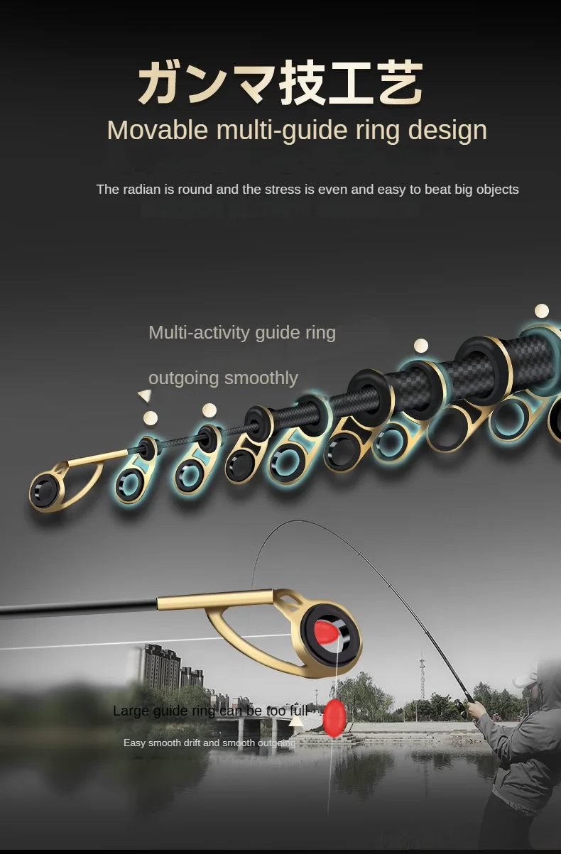 Caña de pescar de carbono de guía grande, caña de pescar ultraligera, telescópica, superdura, para cosas grandes, 3,6 m-6,3 m
