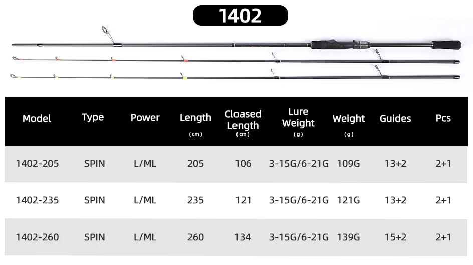 Peso del señuelo: 3-15G G Guías de 6-21G: 15+2