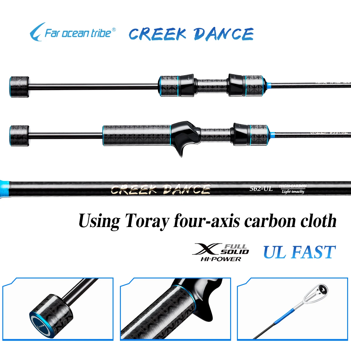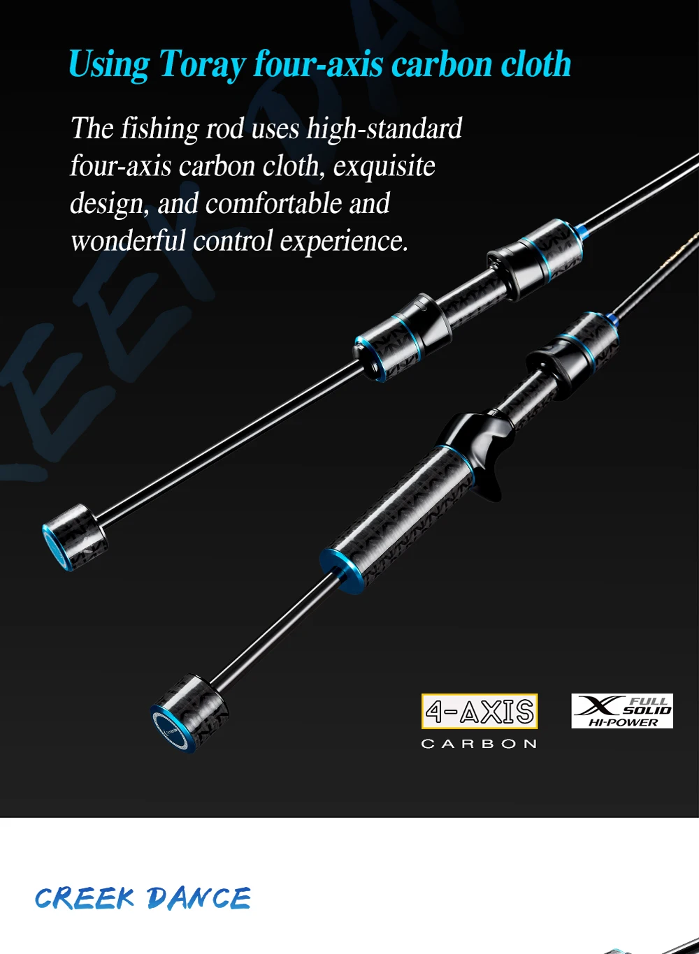 Caña de pescar de carbono puro UL de acción rápida, caña de fundición de Punta sólida para trucha, Creek Dance, 1,5/1,7 m