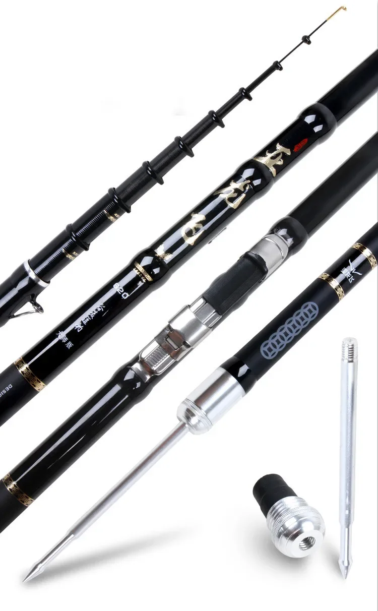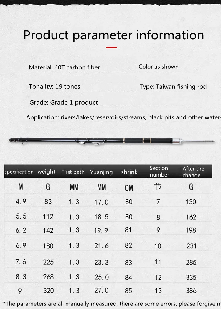 Caña de pescar retráctil de carbono, 4,9m-9m, posicionamiento ultraligero y duro, 19 caña de pescar ajustable, caña de pescar giratoria portátil