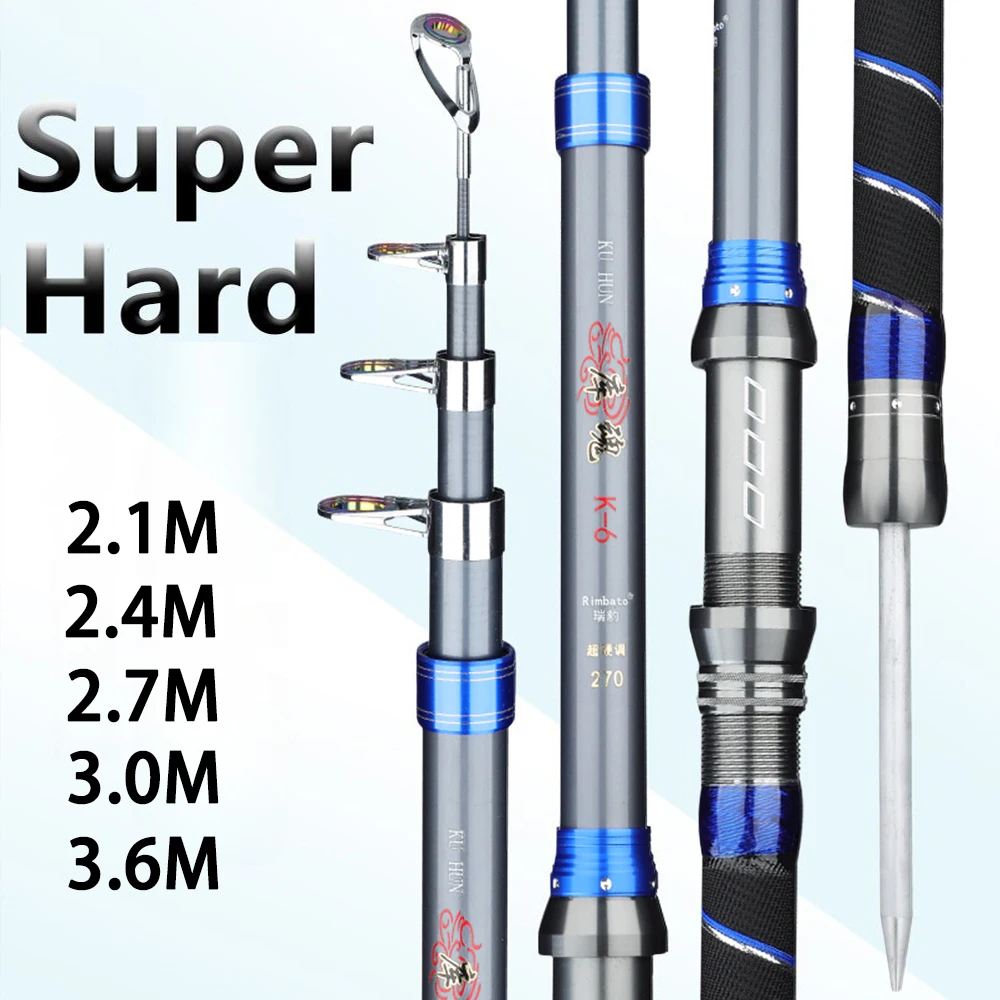 Caña de pescar de carbono súper dura de 2,1 m-3,6 m, fuerte, no es fácil de romper, pesca en agua dulce y de mar, adecuada para cañas de pescar grandes