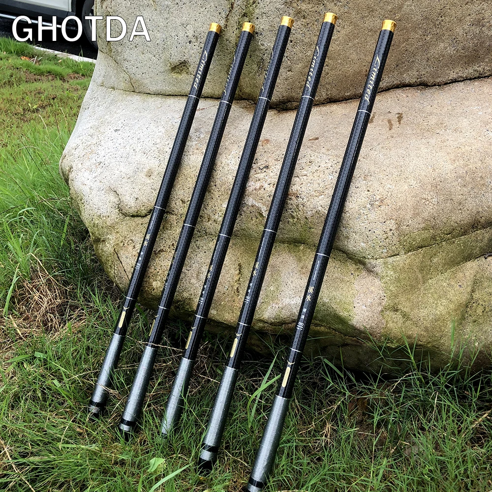 Caña de pescar de carbono súper ligera para carpa, 3,6/4,5/5,4/6,3/7,2 M, caña de pescar telescópica portátil, longitud cerrada, herramienta de pesca de 73cm
