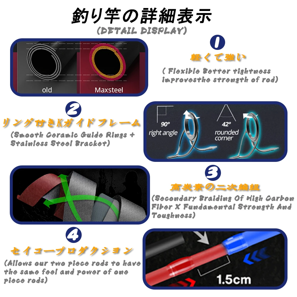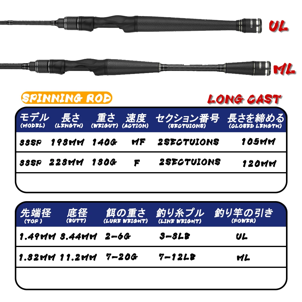 Sobre el peso y la longitud tal vez haya algunas diferencias. Este enlace solo tiene una varilla, sin carrete.