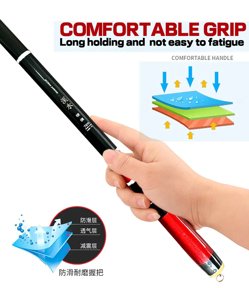 �5. Tela de fibra de carbono de alta calidad, envuelta en múltiples capas para reforzar el cuerpo del poste.✨Paquete incluido1 ud x caña de pescar