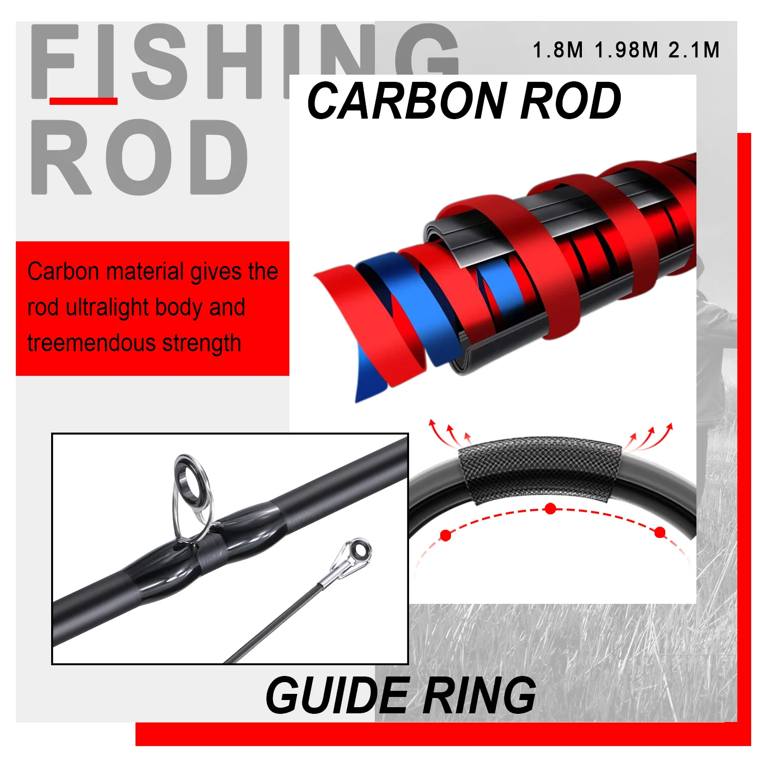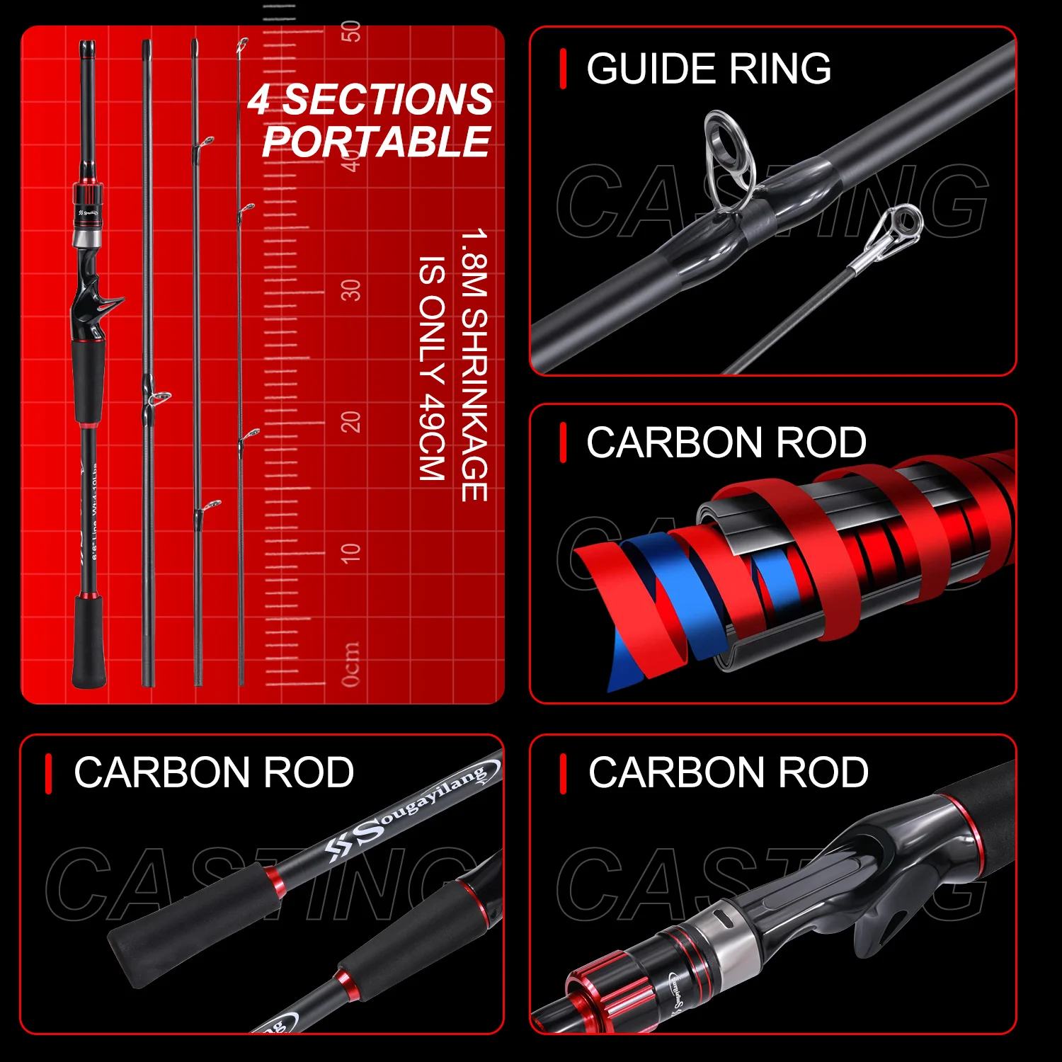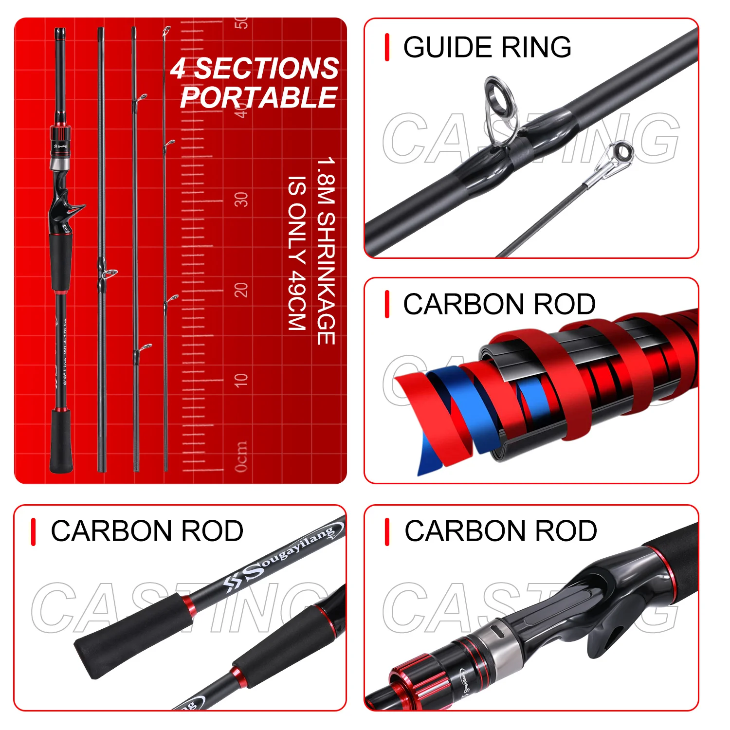 Caña de pescar de carbono ultraligera Sougayilang, mango de EVA, potencia de arrastre de 5kg, perfecta para pesca de lubina, carpa, agua dulce y salada