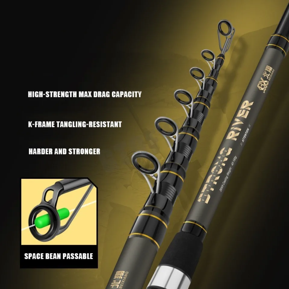 Caña de pescar de carpa de 2,1-5,4 M, mar, lago, fibra de carbono, lanzamiento de distancia, barco oceánico, caña giratoria de pesca, poste telescópico súper duro
