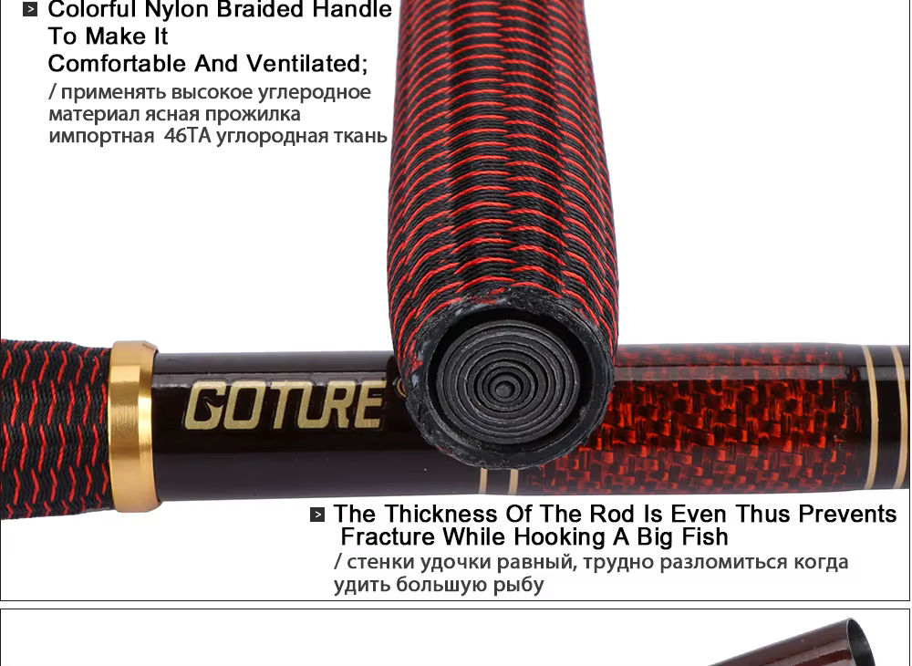 El grosor de la caña es uniforme, por lo que evita fracturas al enganchar un pez grande;