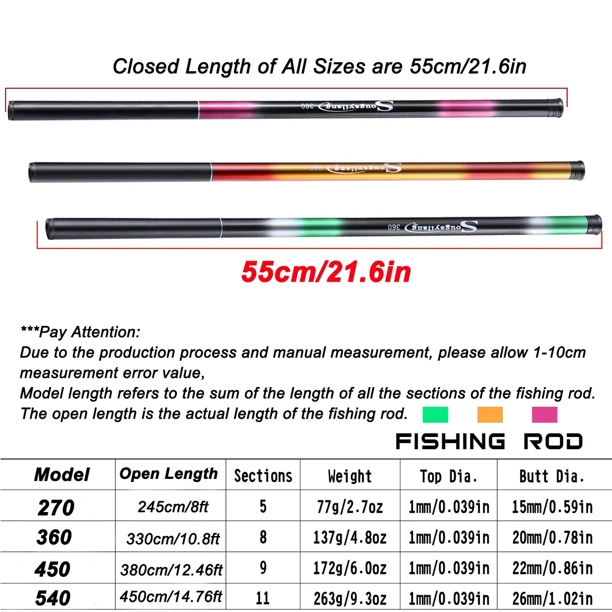 Sougayilang caña de pescar de carpa 2,45 m 3,3 m 3,8 m 4,5 m caña de pescar telescópica ultraligera portátil arrastre máximo 5 kg herramientas de pesca Pesca
