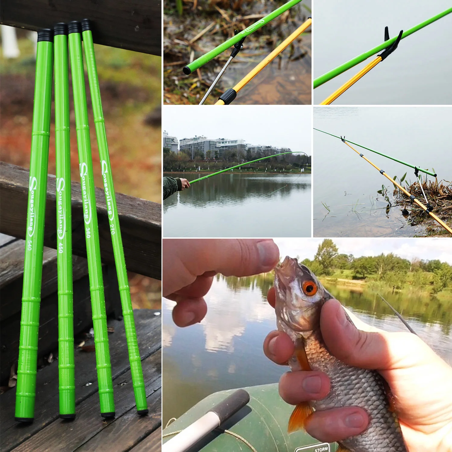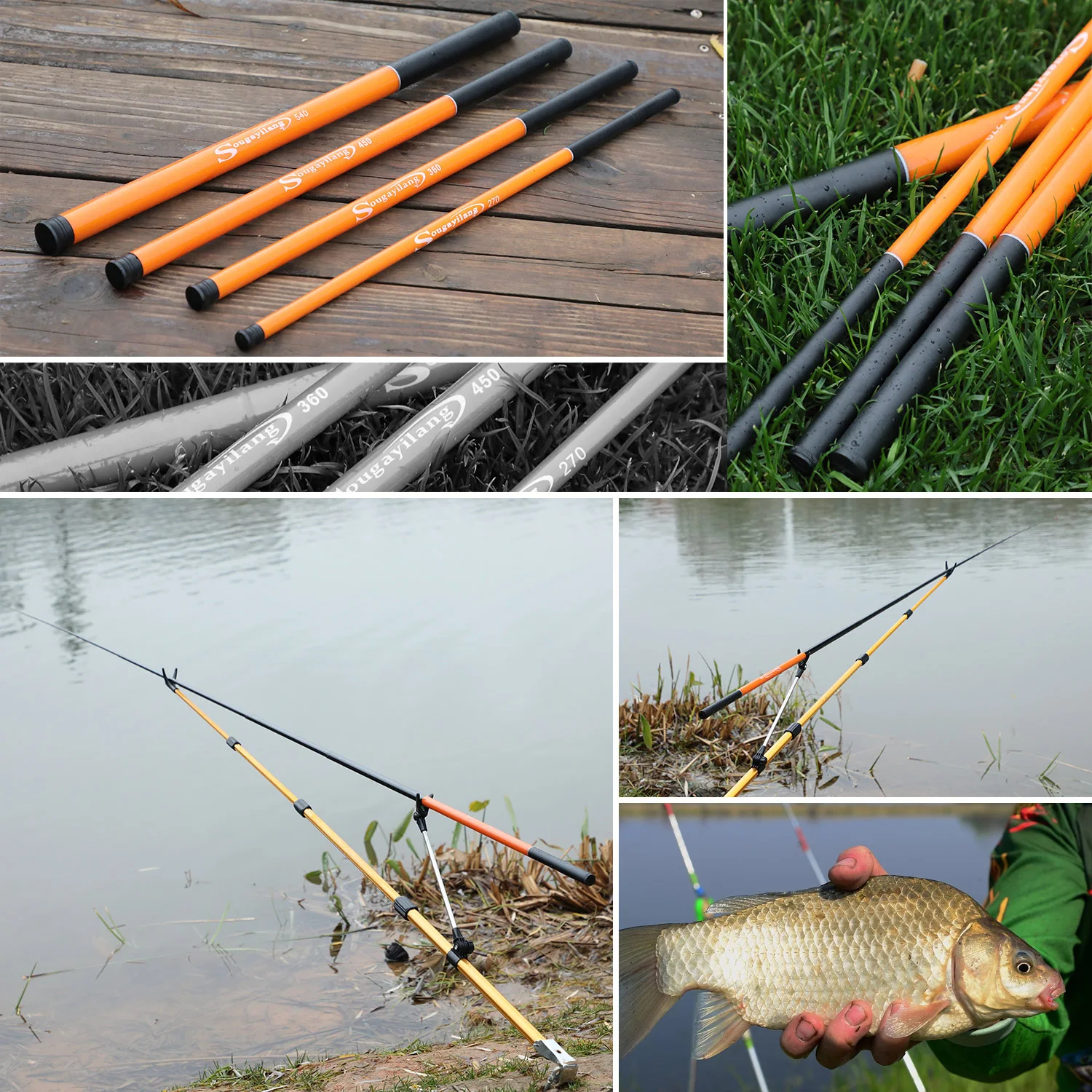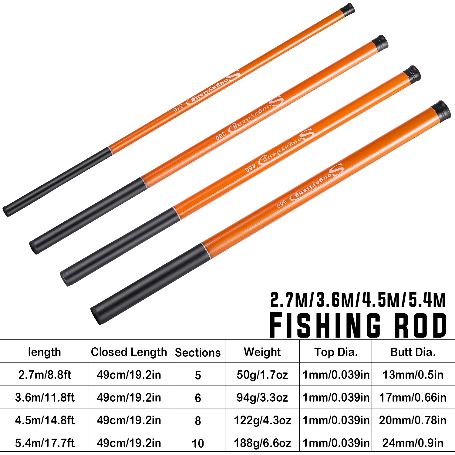 Caña de pescar de carpa Sougayilang, 2,7/3,6/4,5/5,4 M, fibra de carbono dura, caña telescópica ultraligera portátil, arrastre máximo de 5Kg, herramientas de pesca