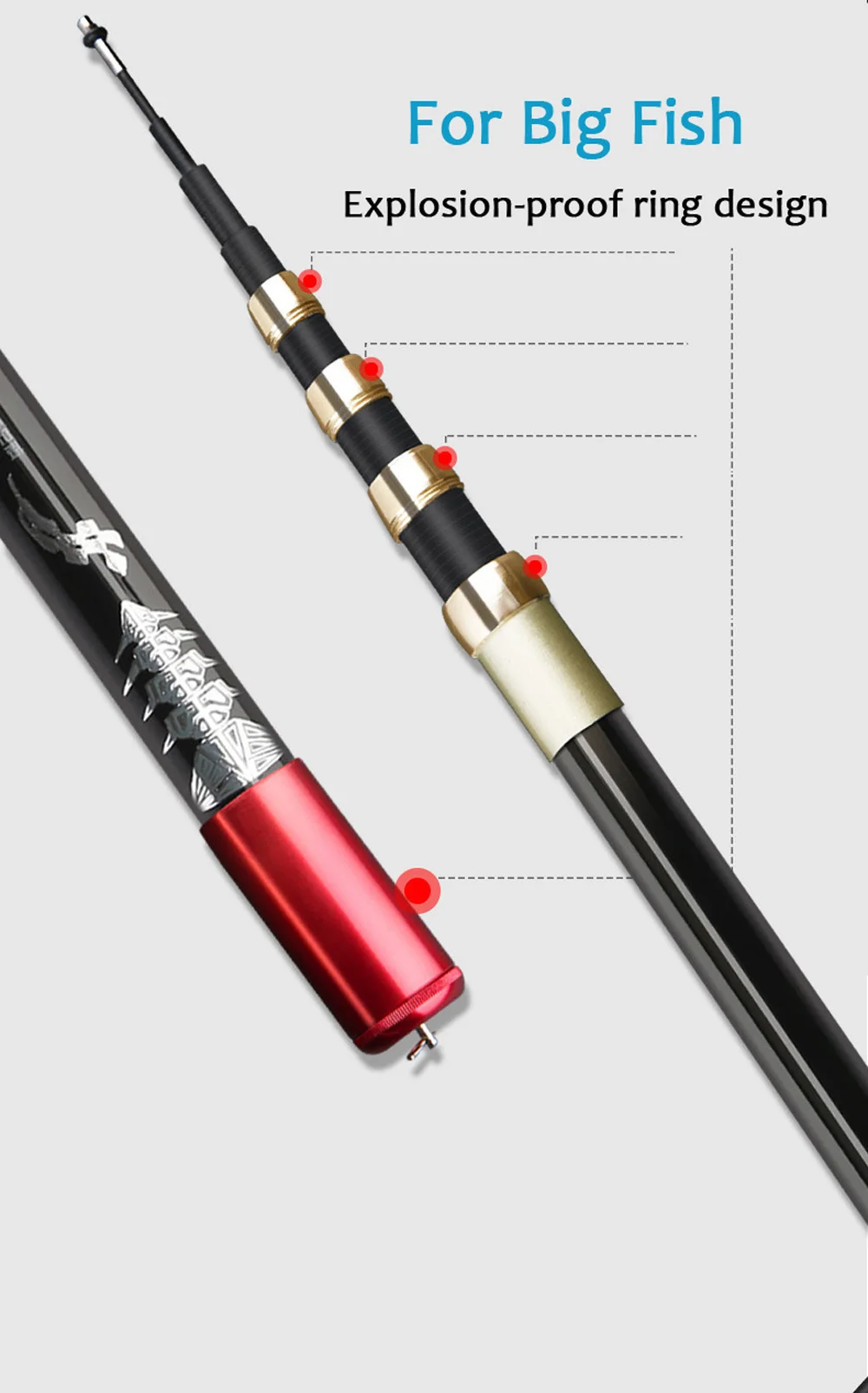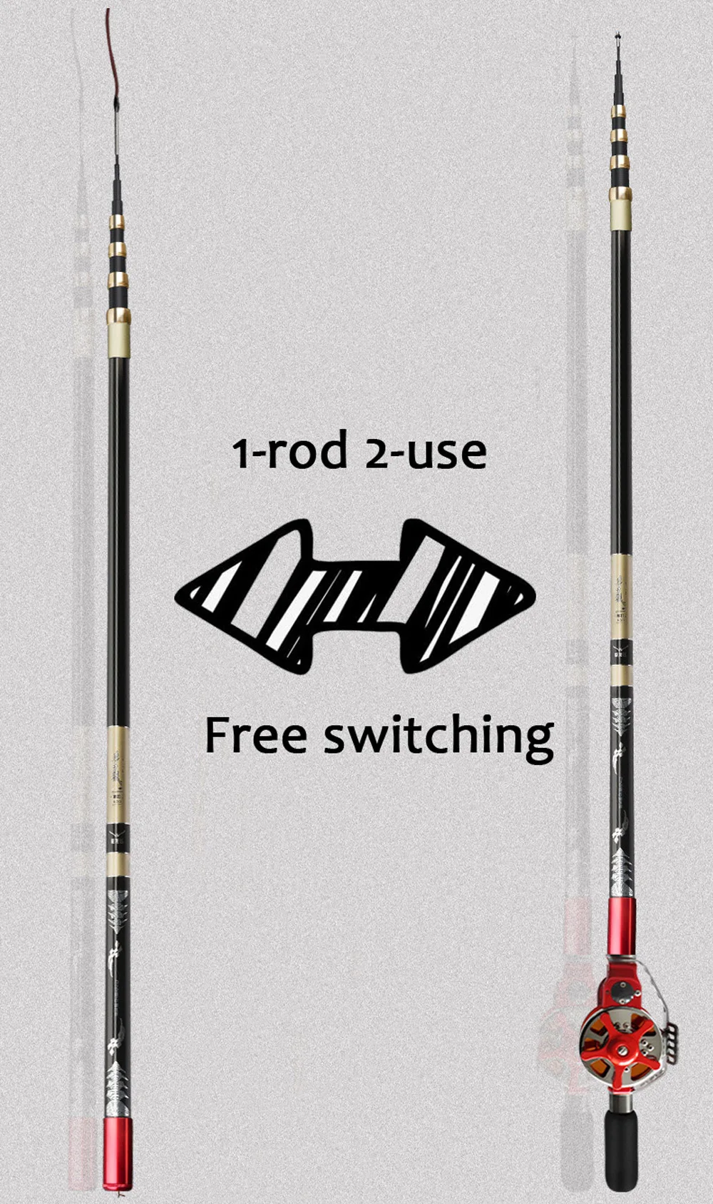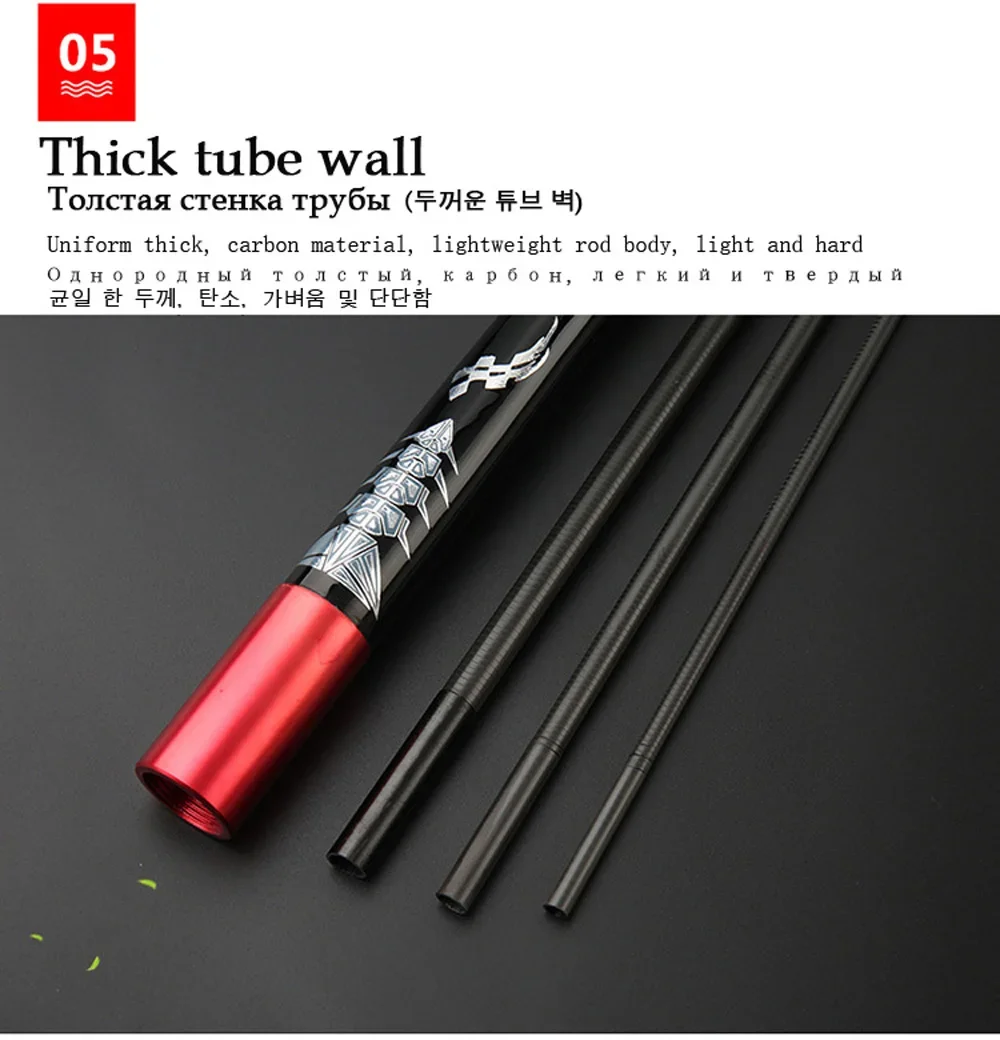Caña de pescar con carrete hueco, caña de pescar telescópica de fibra de carbono de doble uso, cañas de corriente superdura, caña de mano 4,5/5,4/6,3/7,2/8,1/9M