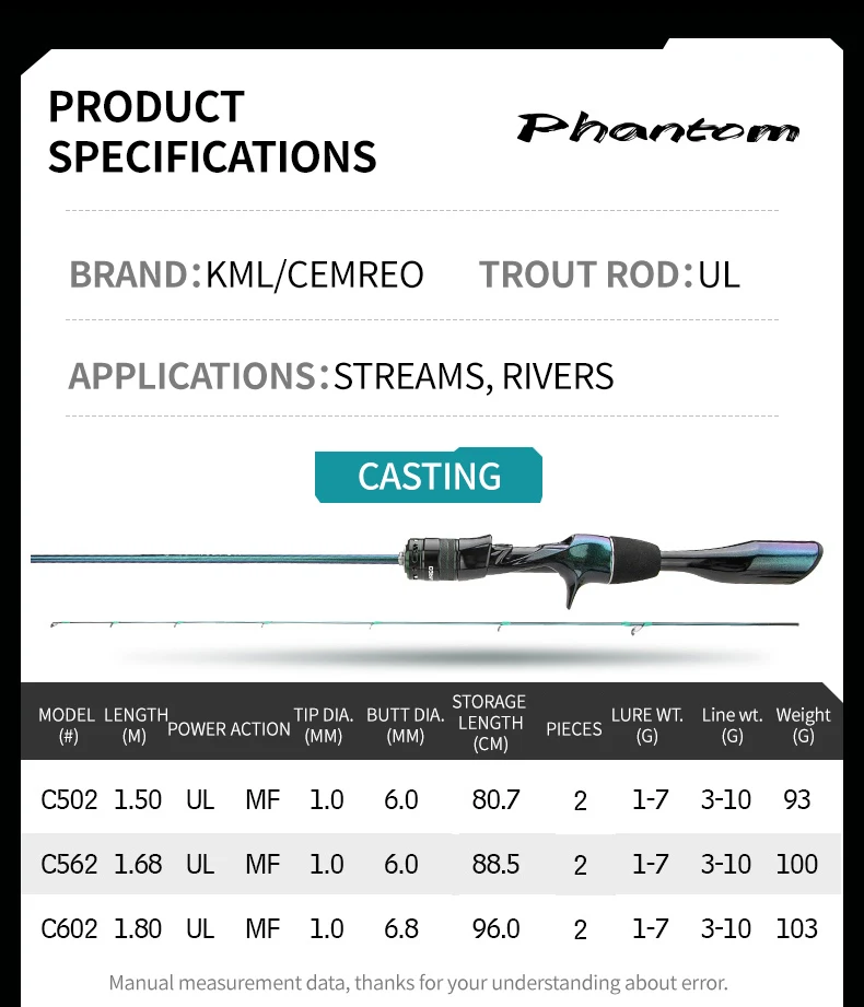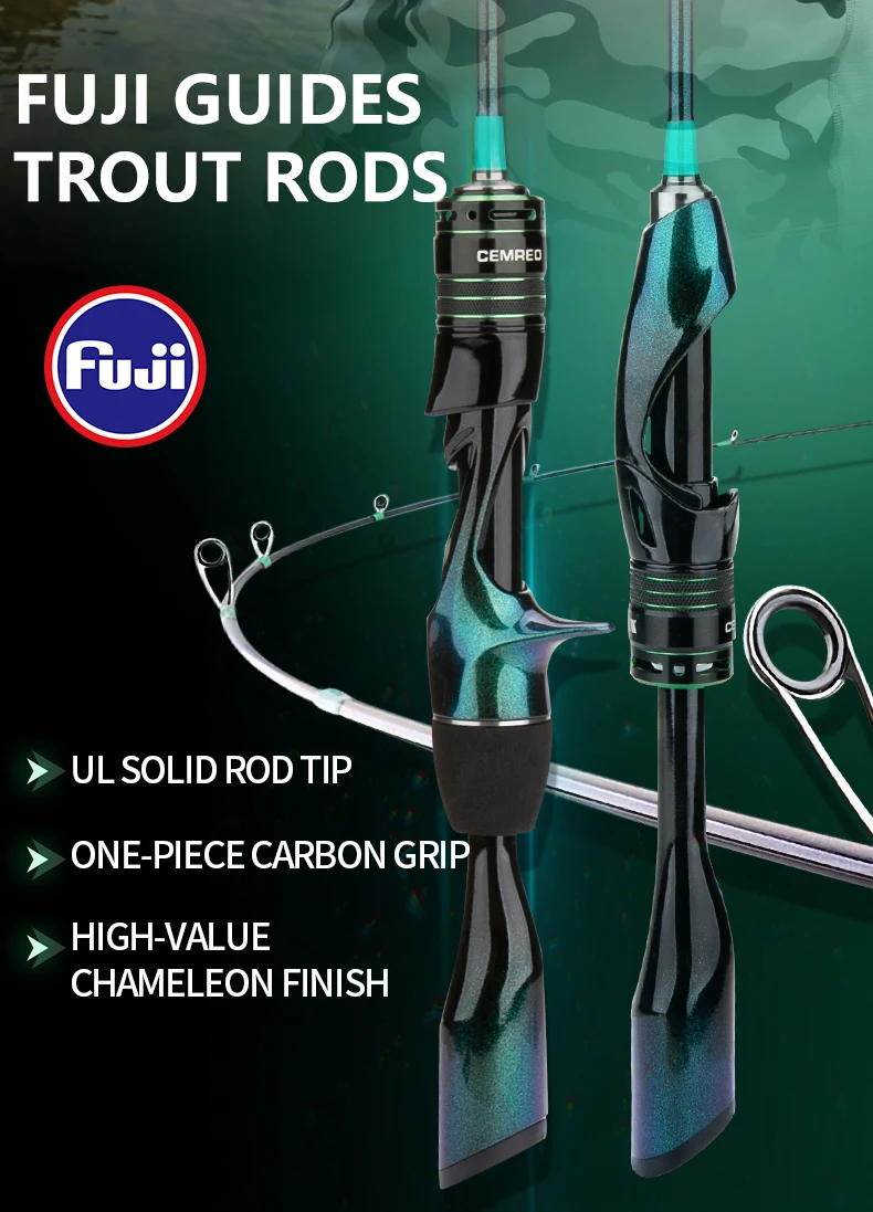 Caña de pescar CEMREO ligera UL, 1,5 m-1,8 m, punta sólida, caña para trucha, guías Fuji, caña giratoria con agarre de carbono de una sola pieza, caña de fundición de cebo