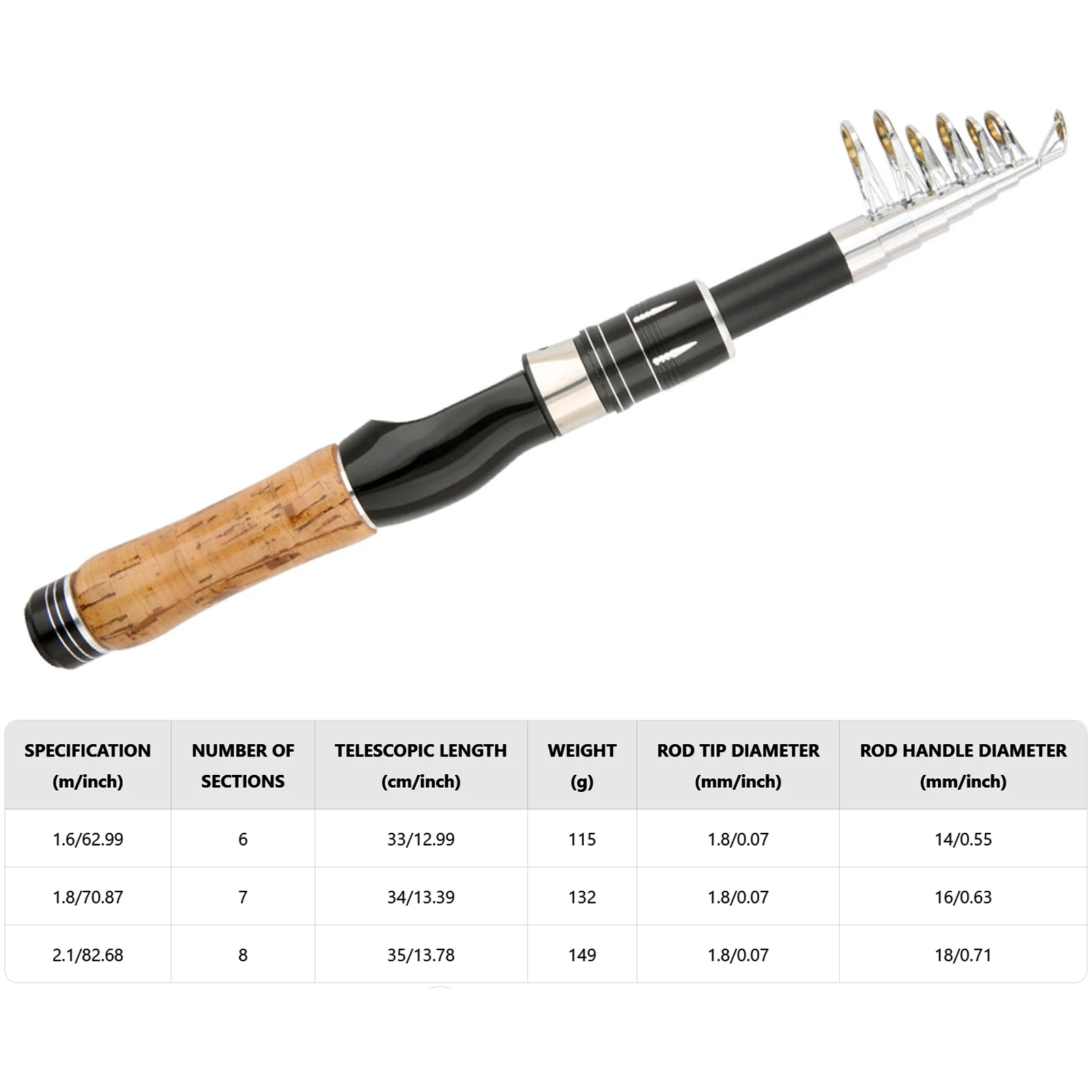 Diseño telescópico: la varilla de carbono de varias secciones colapsa hasta solo 35 cm, lo que la hace muy portátil y fácil de guardar en mochilas o estuches de viaje.