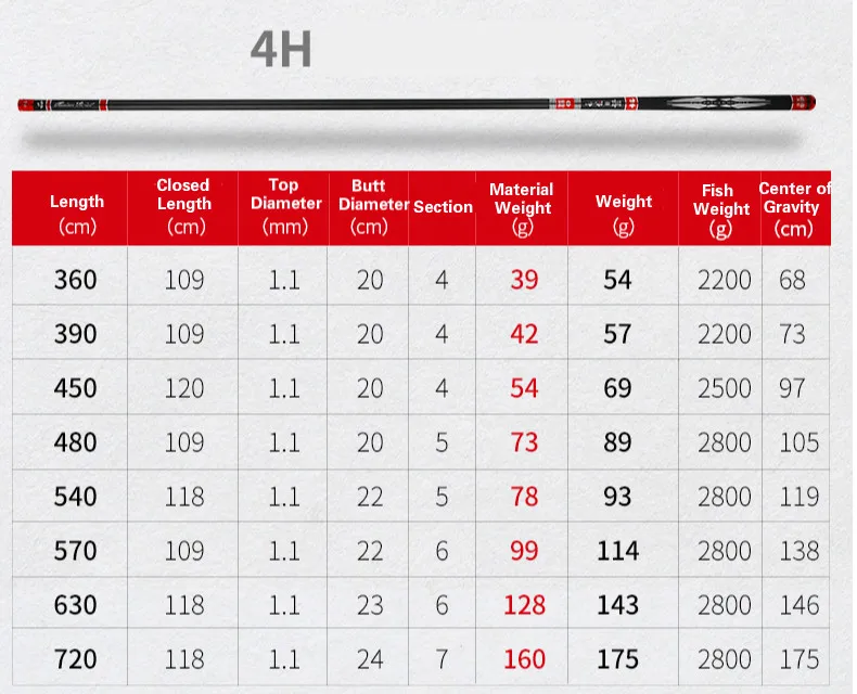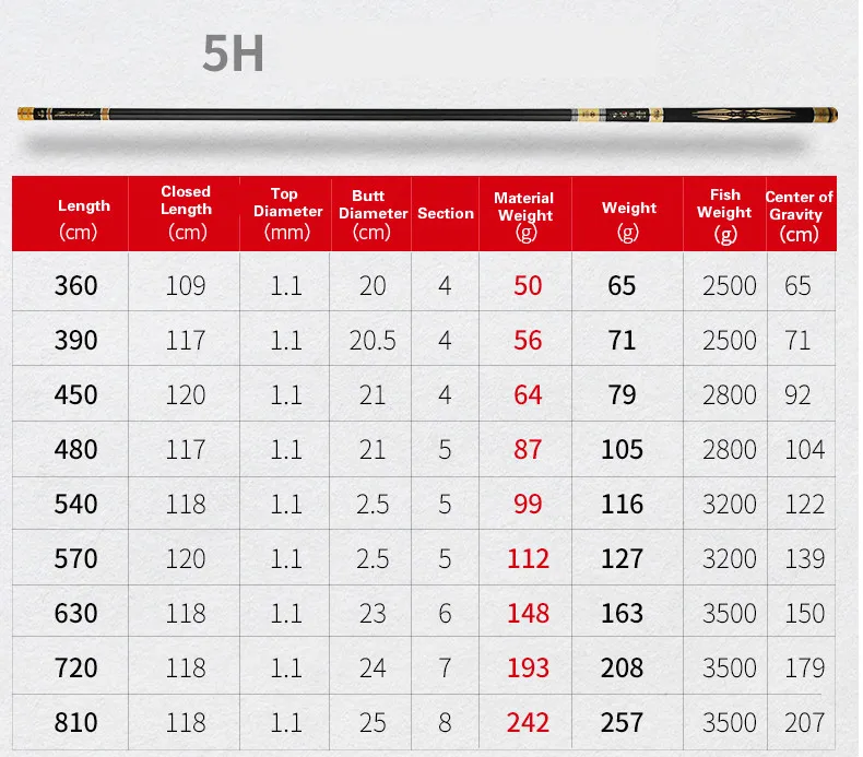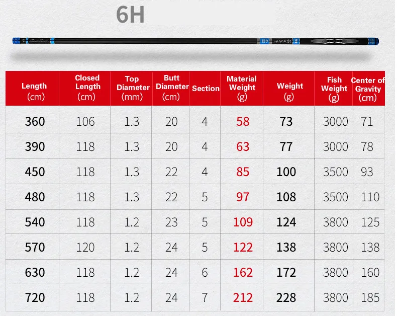 Longitud: 3,6-8,1 m Longitud cerrada: 109-120cm