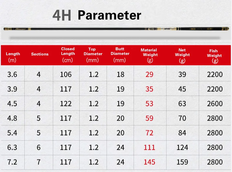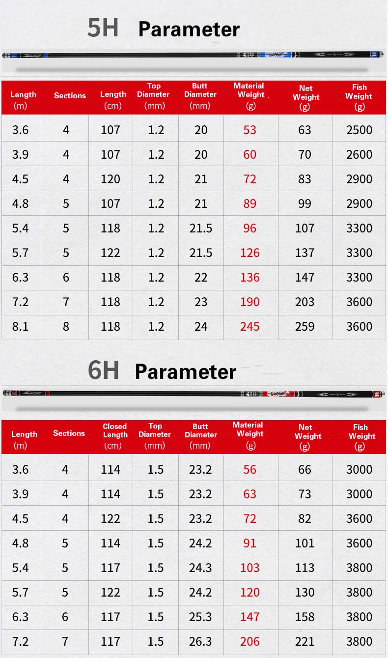 5. no hay diferencia entre los tres tipos de cañas de pescar excepto por el color y la dureza. Dureza: 6H 5H 4H