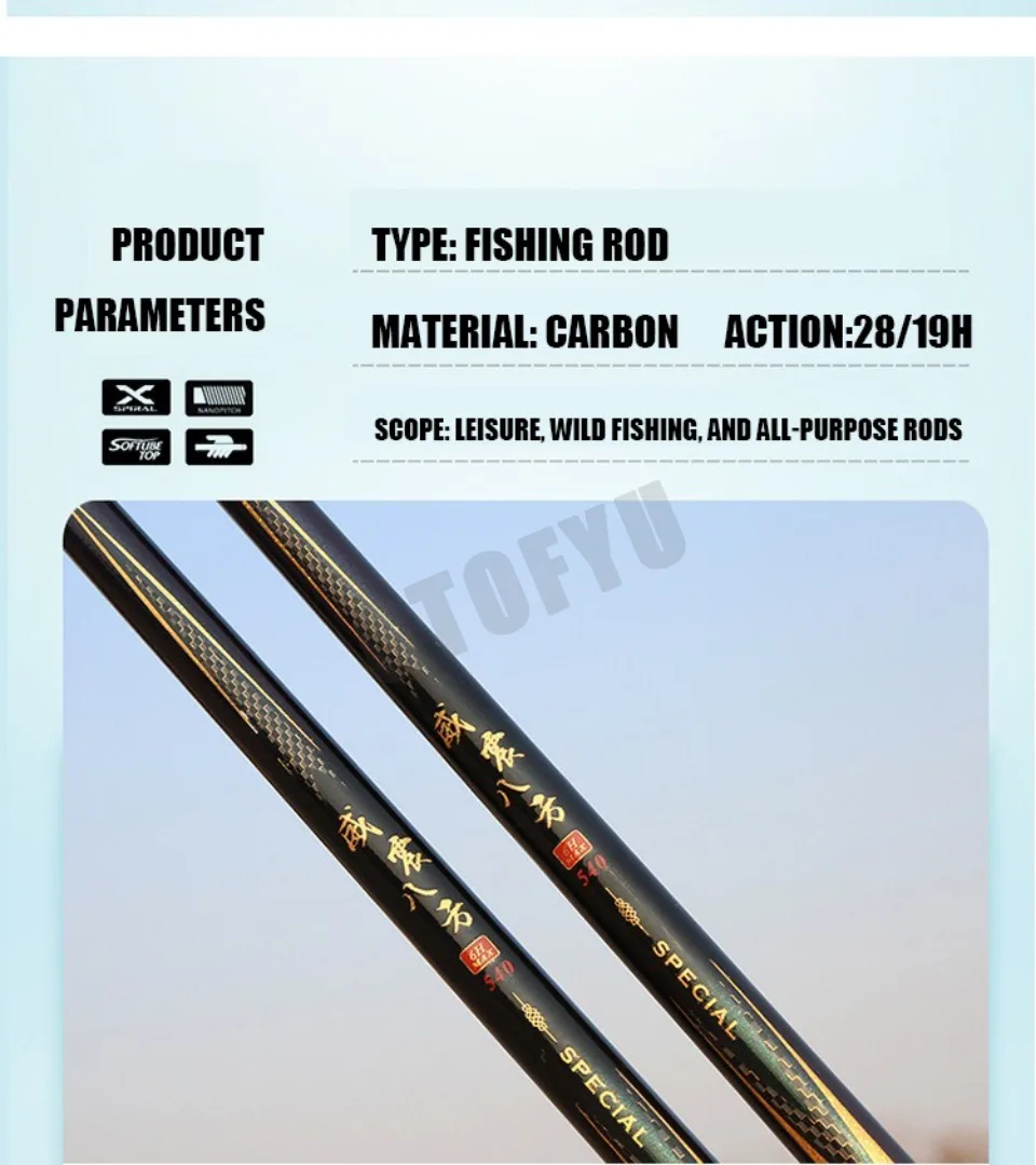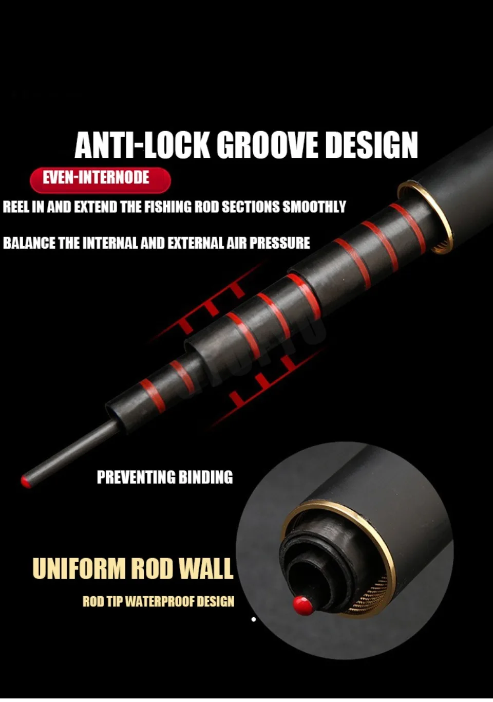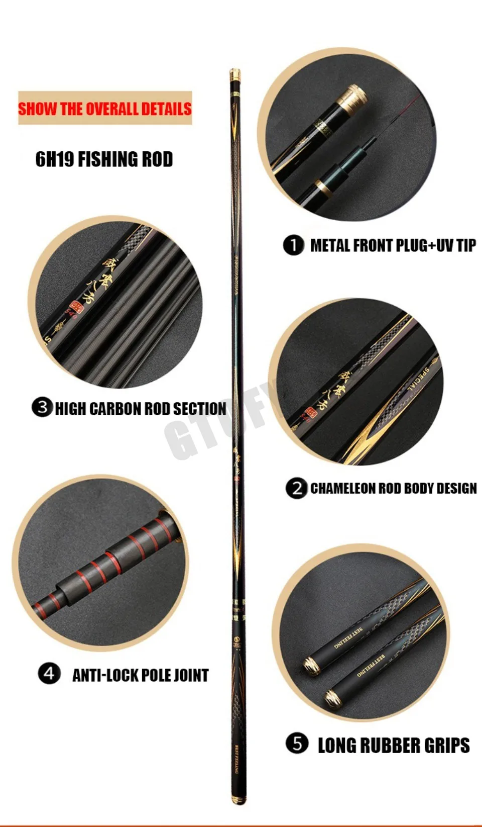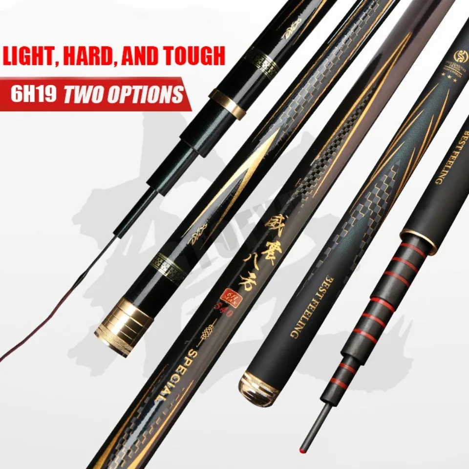 Caña de pescar dura súper ligera 6H19, caña de agua dulce y salada de alta calidad, caña de mano telescópica de carbono de 2,7 m/8,1 m para carpa