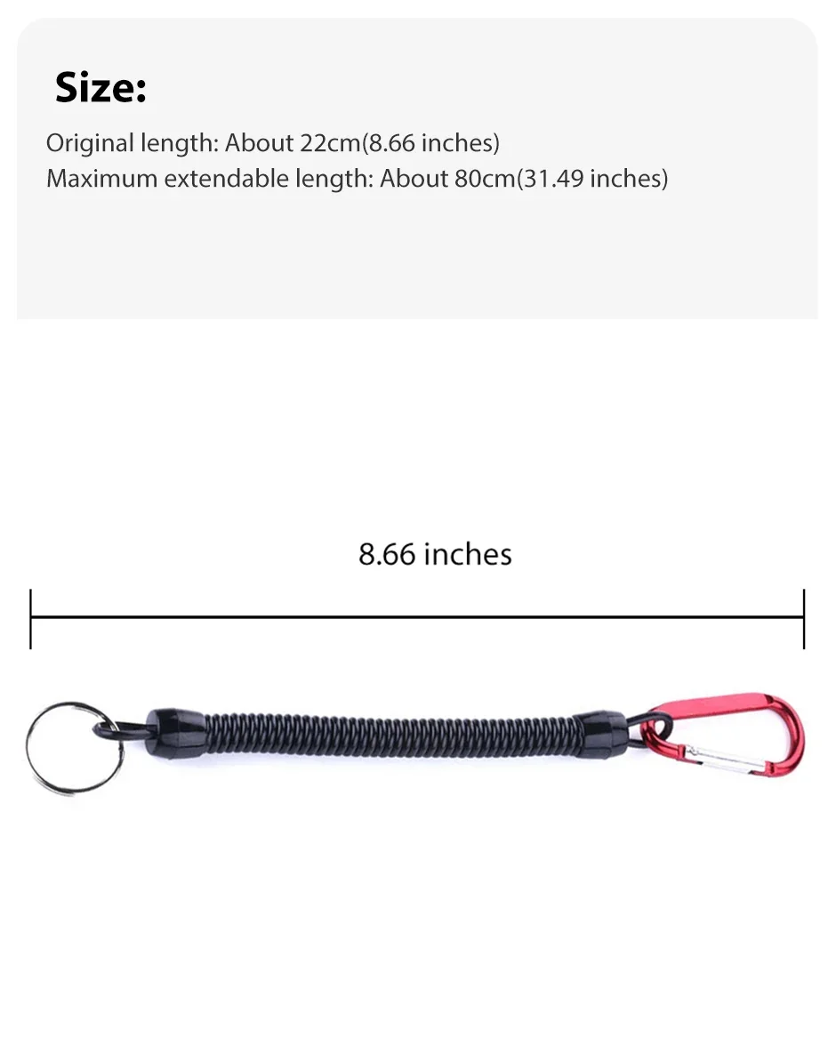 • Cuerda de retención de cuerda de pesca de barco de TPU con mosquetón:La cuerda de retención de cuerda de pesca de navegación de TPU con mosquetón garantiza que su equipo de pesca permanezca firmemente sujeto a su barco o caña de pescar.