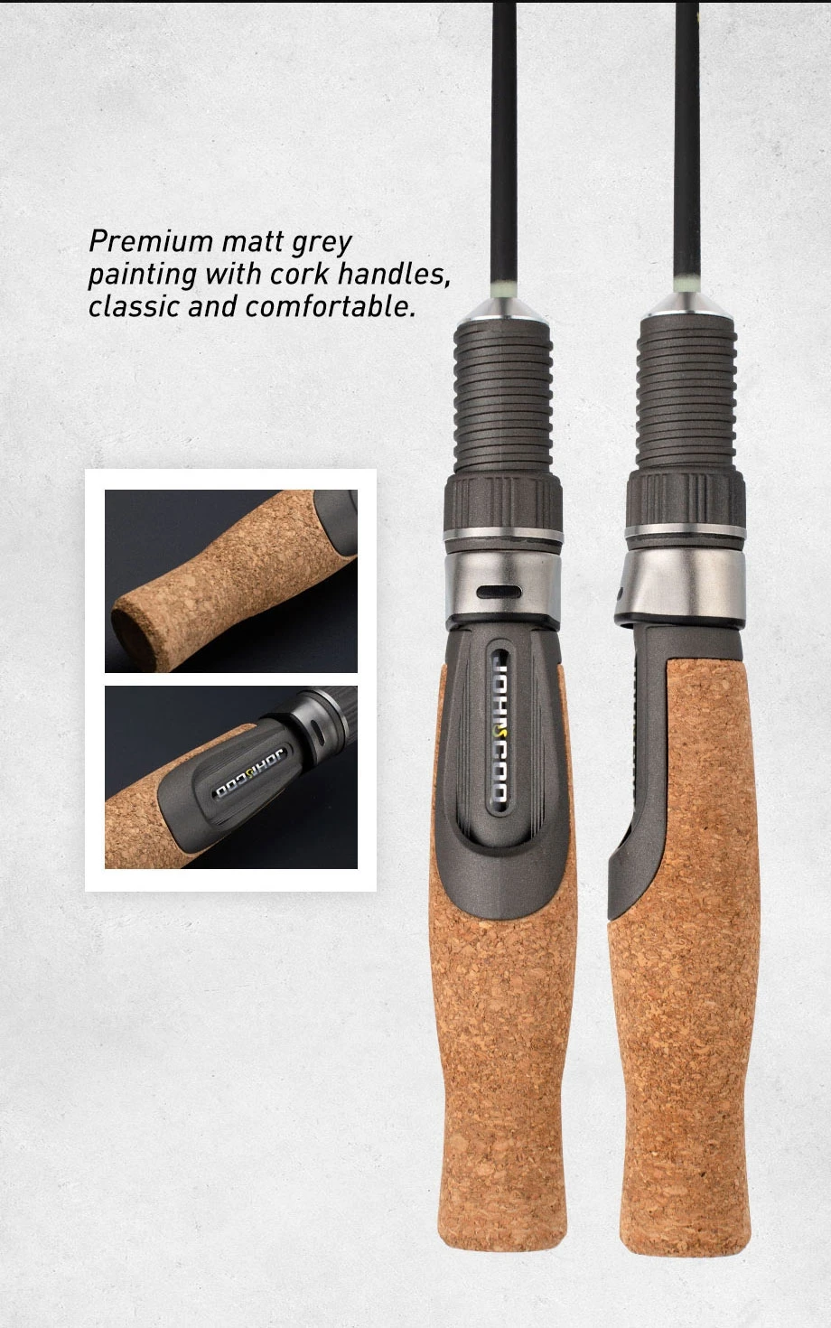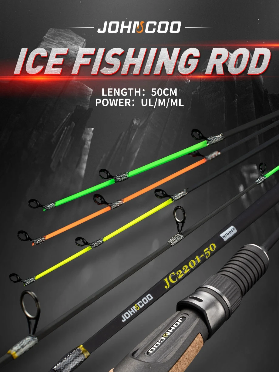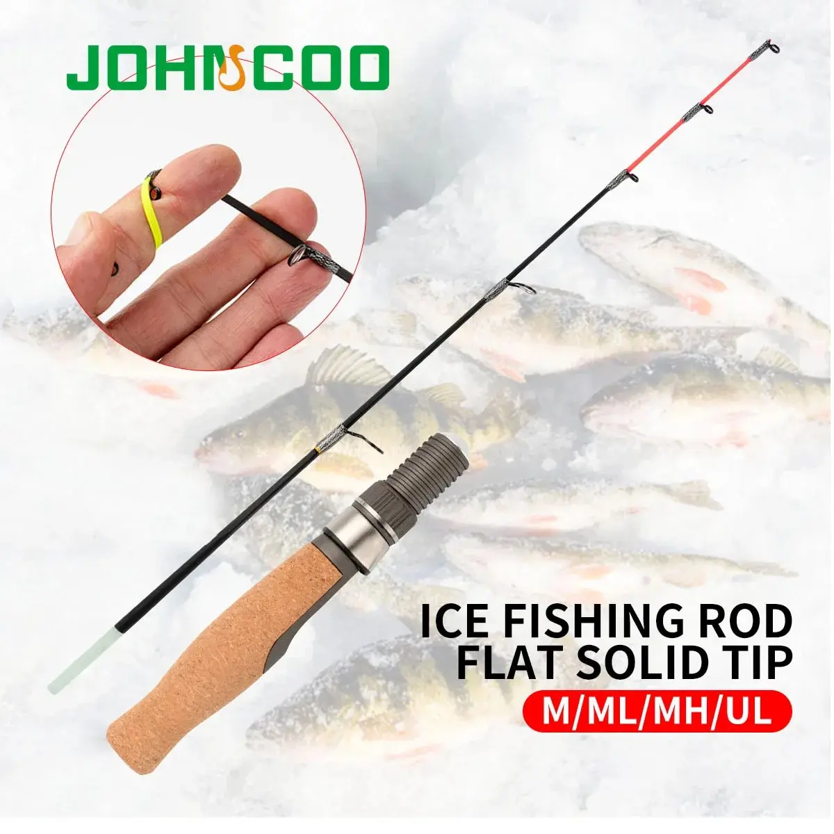Caña de pescar en hielo, 50cm, UL, ML, M, MH, punta suave con punta plana, punta de fibra de vidrio de alta calidad con mango de corcho