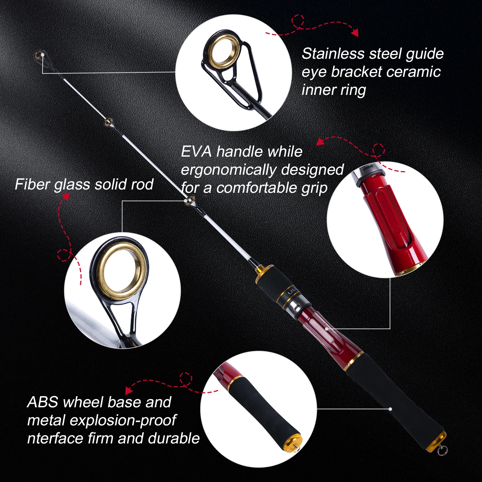 Caña de pescar en hielo Goture, 60cm, 65cm, caña de pescar de invierno, cañas de pescar en hielo de fibra de vidrio sólido, caña de aparejos de señuelo ultracorto