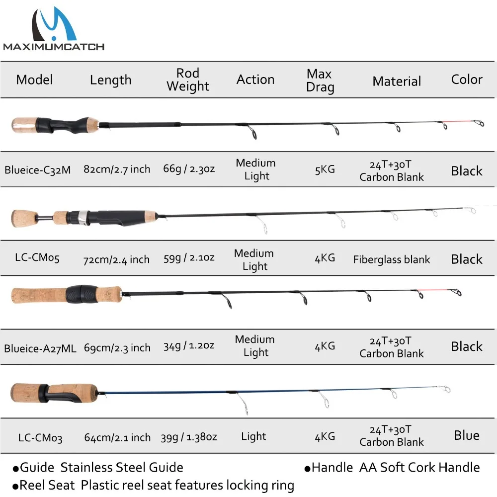 Maximuncatch caña de pescar en hielo ligera IM7 fibra de carbono caña de pescar de invierno caña de pescar aparejos de pesca giratorios