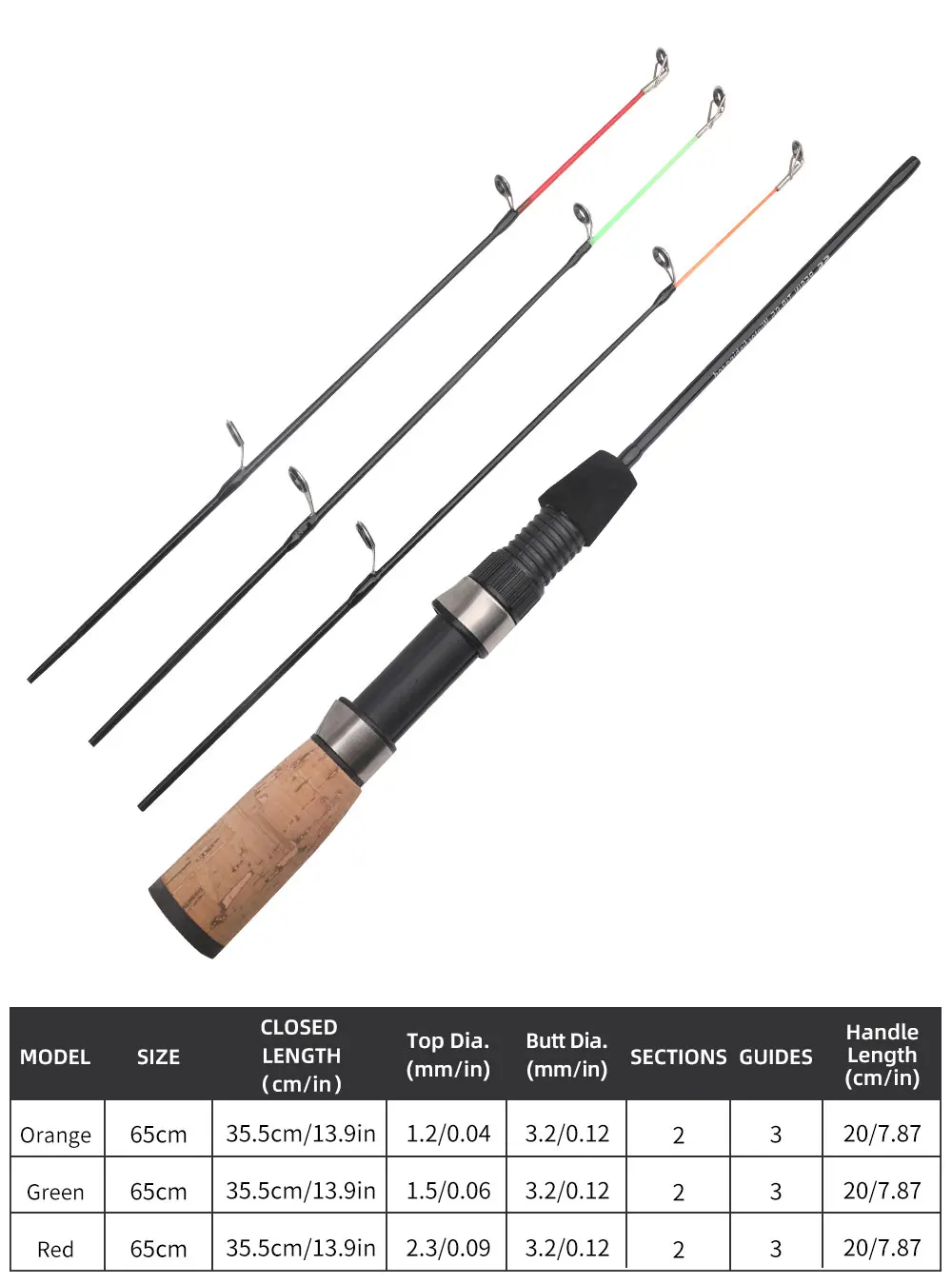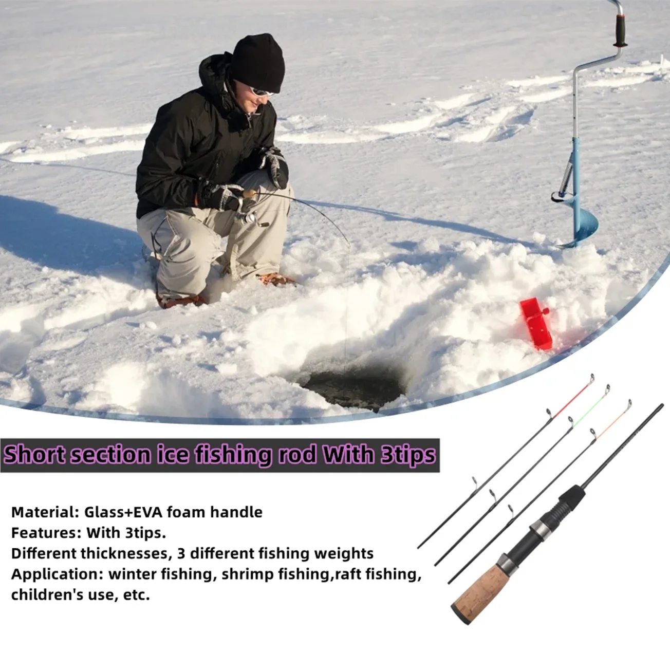 Caña de pescar en hielo con mango de 3 puntas, Mini caña telescópica portátil para pesca en hielo, aparejos de pesca, 55cm