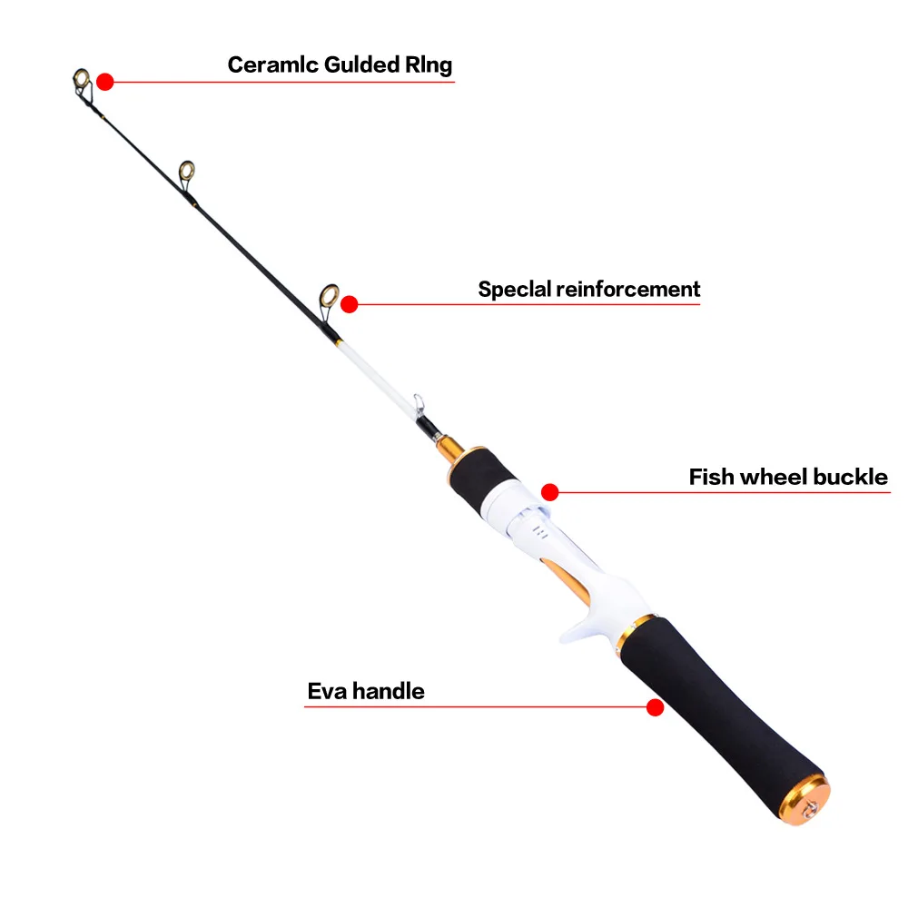Caña de pescar en hielo con punta sólida, 60/70cm, Combo de bolsillo portátil para barco, señuelos duros de fundición giratoria