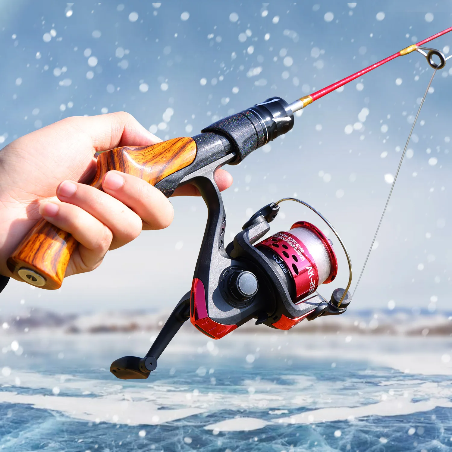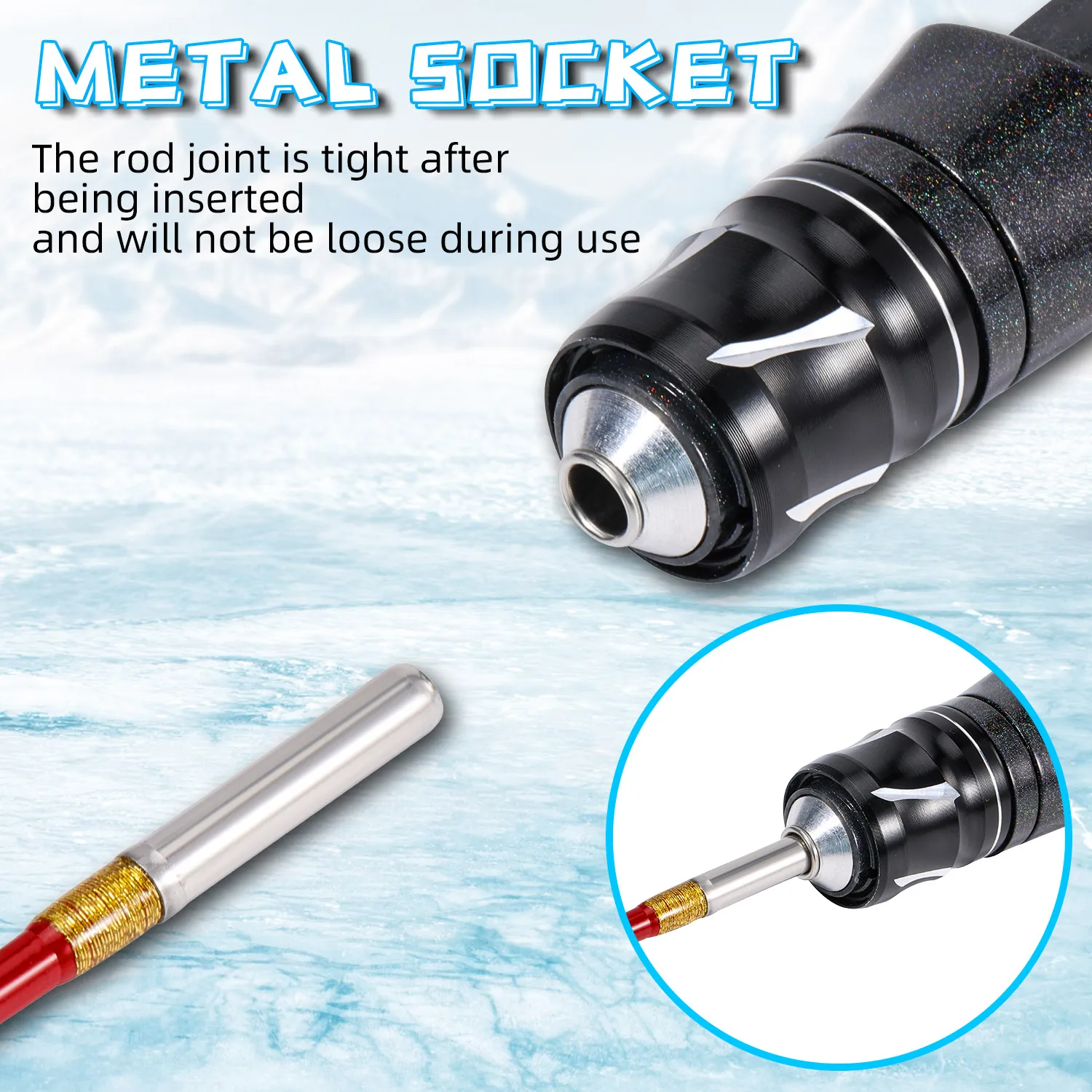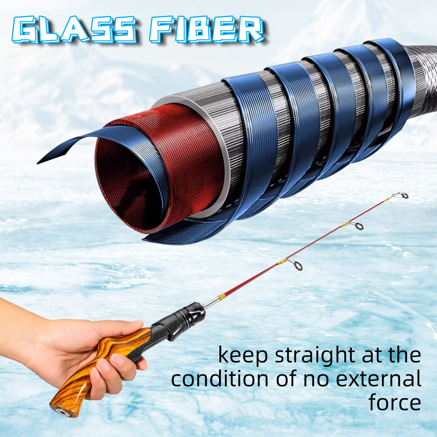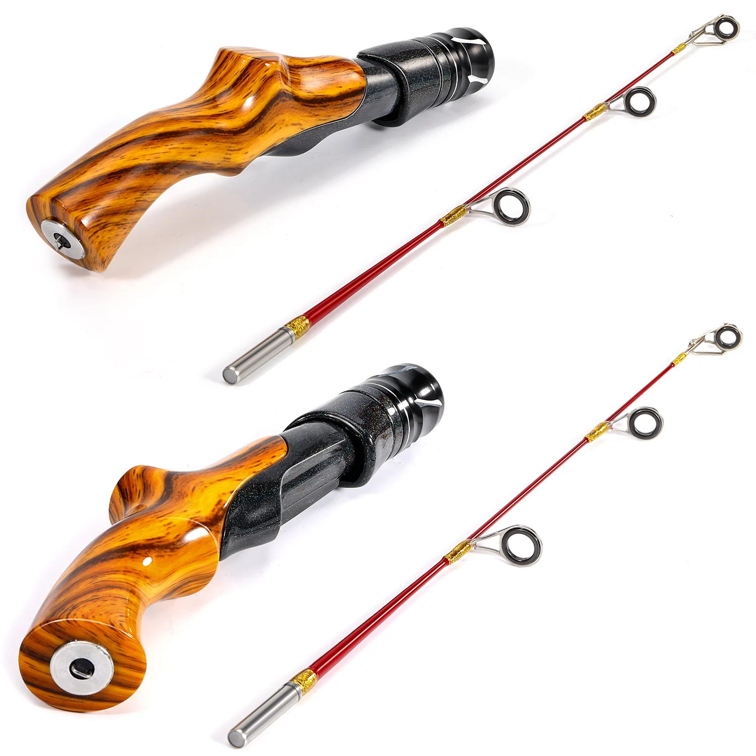 Caña de pescar en hielo Sougayilang, cañas de pescar de invierno de 2 secciones, caña de pescar portátil de invierno, aparejos de caña de pescar de hielo giratorios para invierno