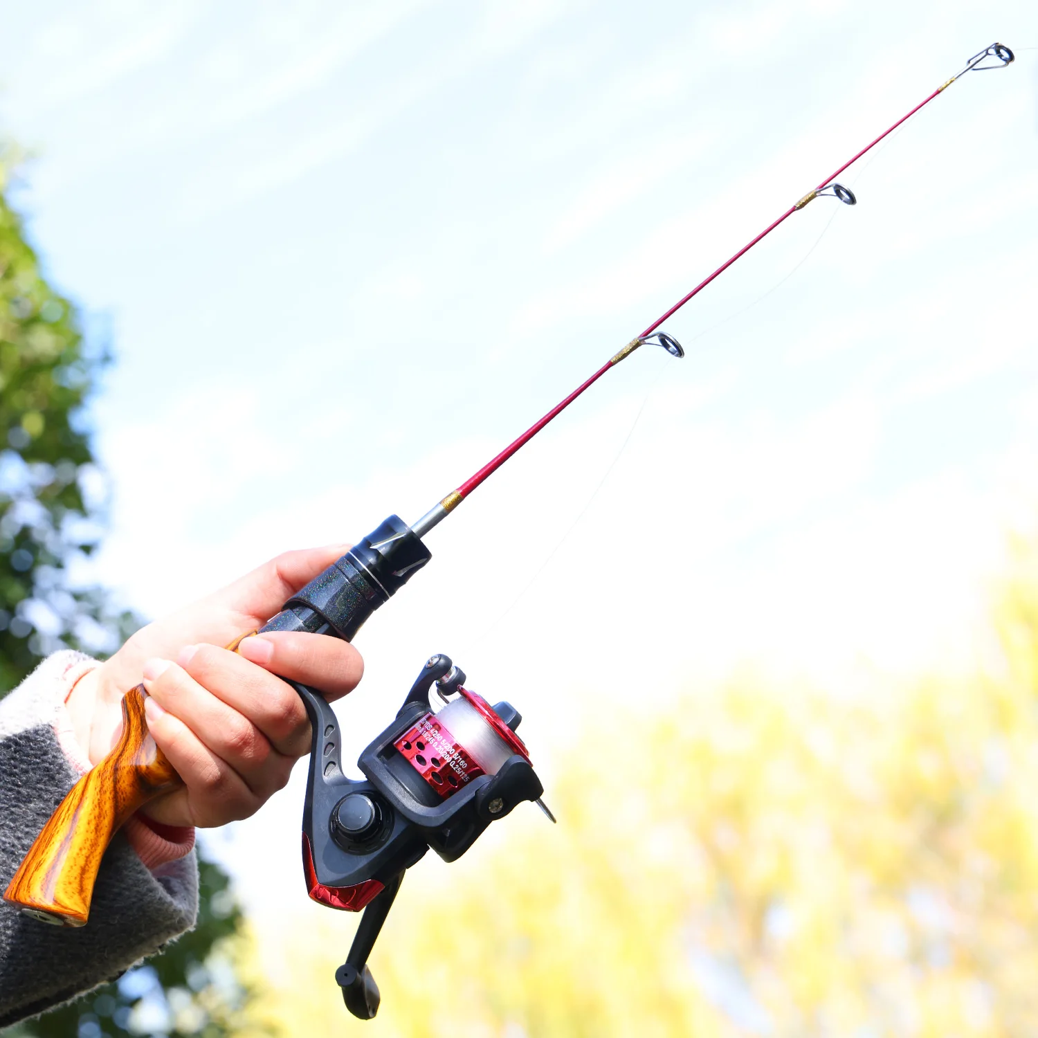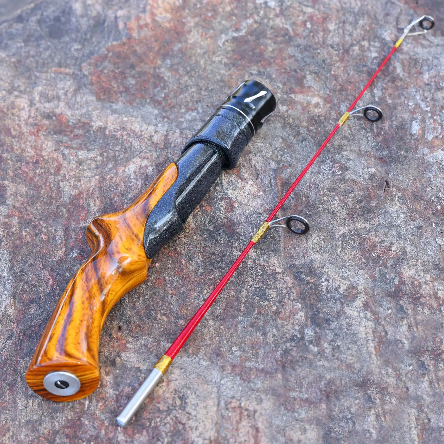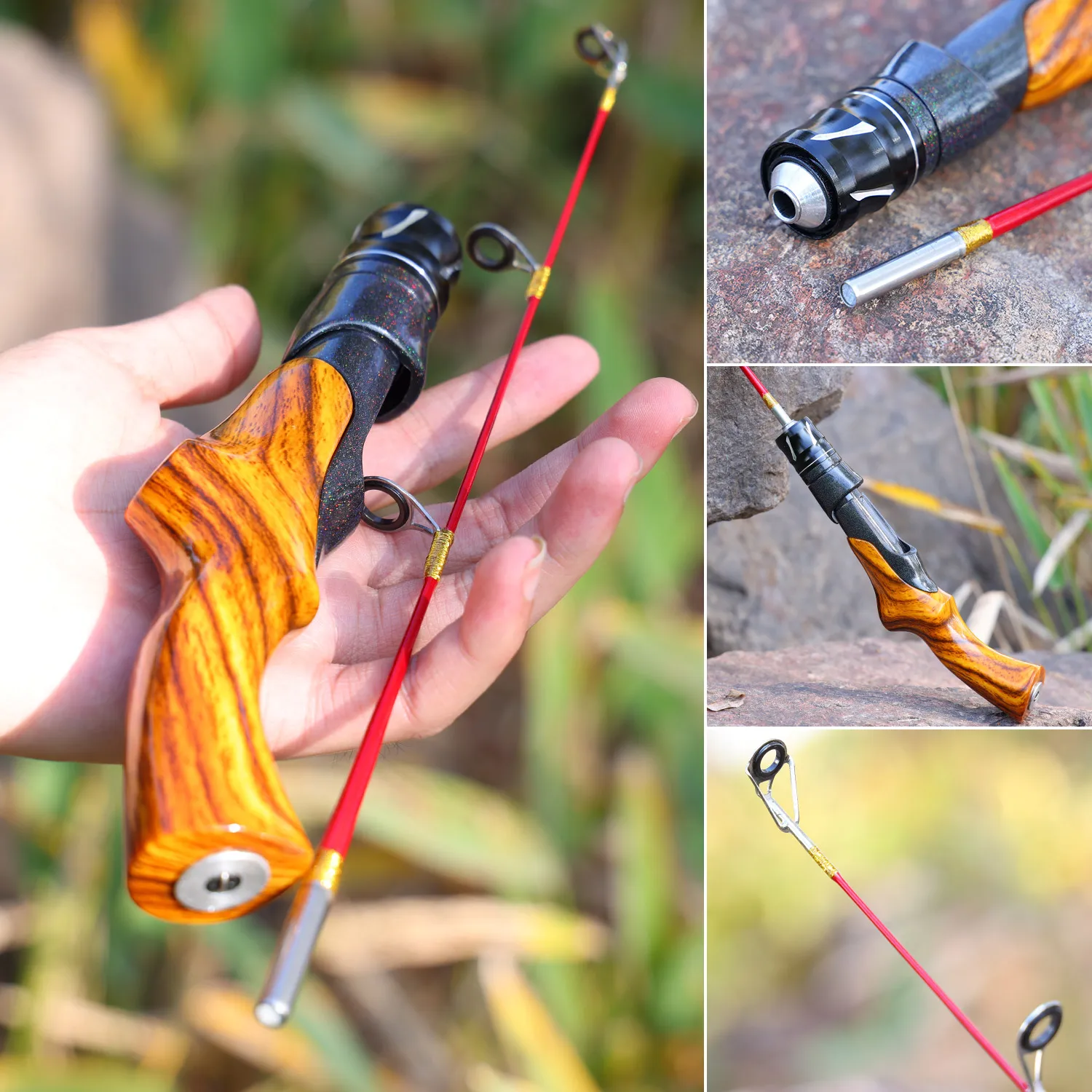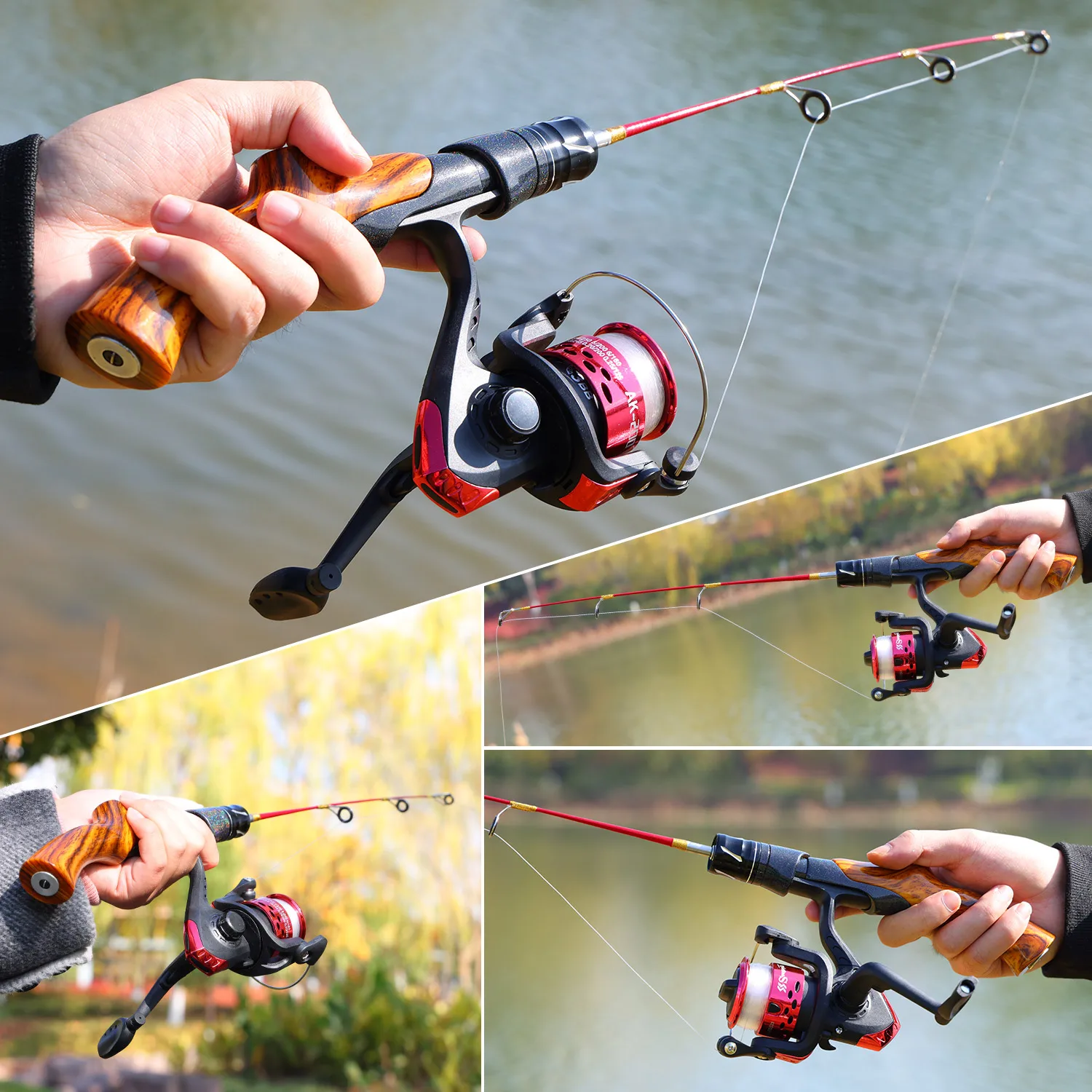Caña de pescar en hielo Sougayilang, cañas de pescar de invierno de 2 secciones, caña de pescar portátil de invierno, aparejos de caña de pescar de hielo giratorios para invierno