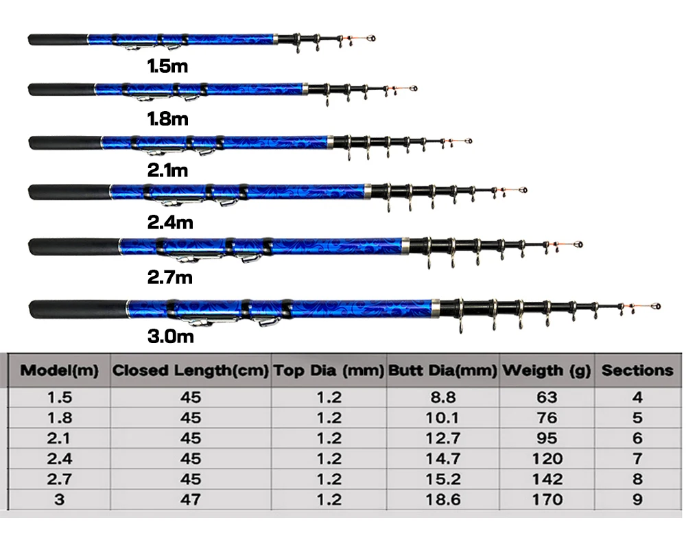 Caña de pescar de roca de carbono de alta calidad 4/5/6/7/8/9/10 secciones caña giratoria 1,5 m-3m caña de pescar telescópica de mango largo súper ligera