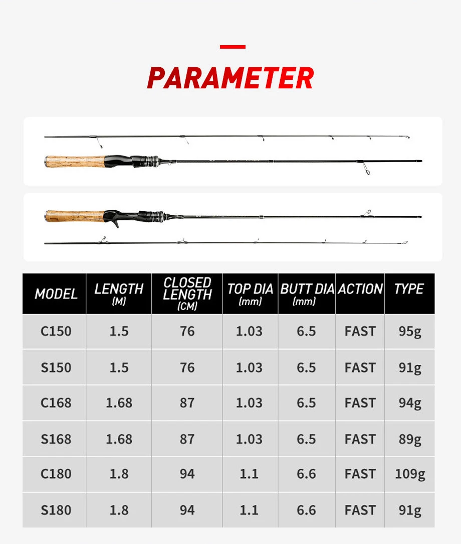 Caña de pescar de fibra de carbono 150cm 168cm 180cm señuelo de Punta UL rápido ultraligero caña de pescar para trucha