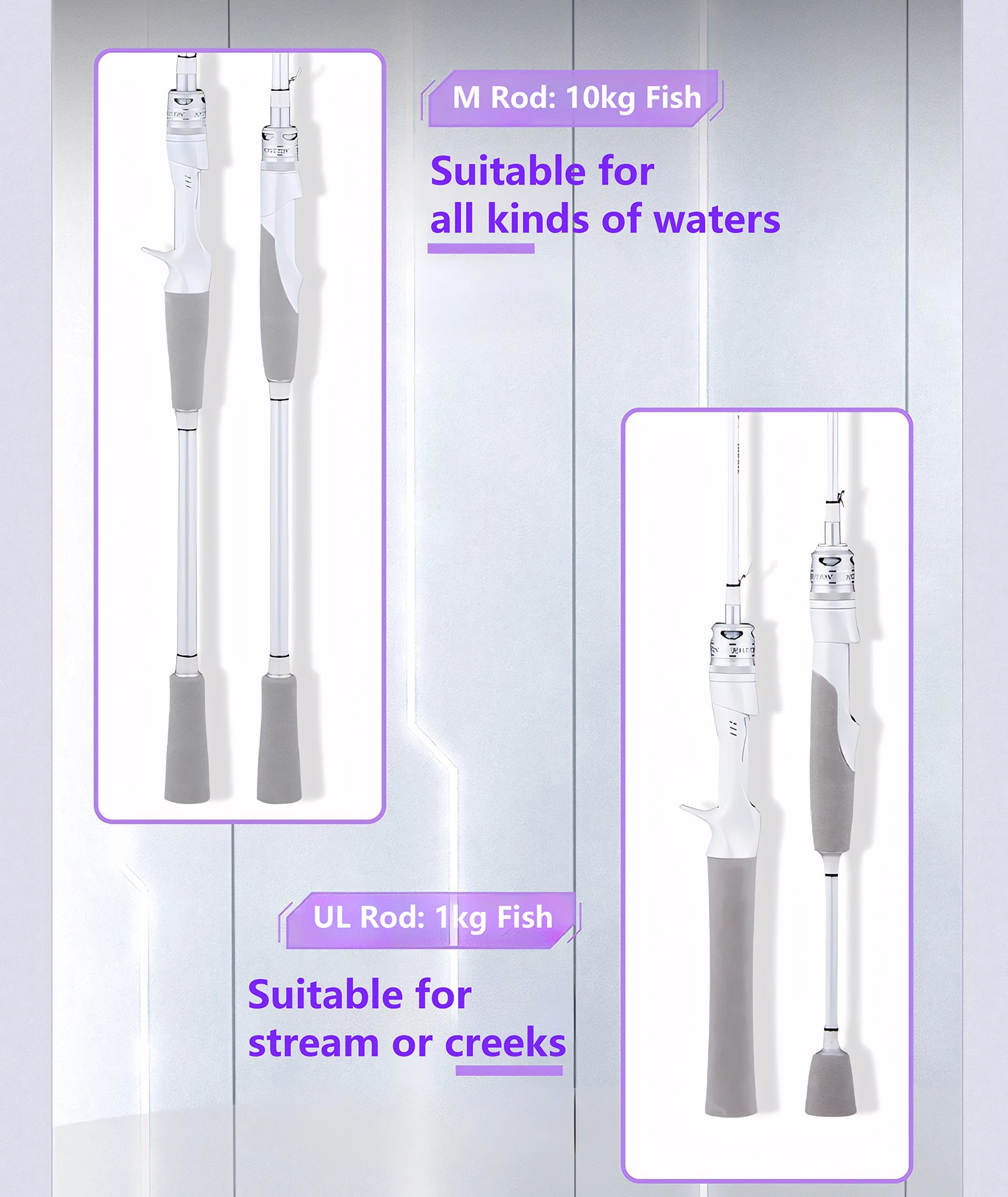 * Longitud de la caña de pescar estilo 2 secciones: 1,68 m/1,8 m