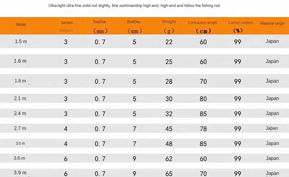 Caña de pescar de fibra de carbono, alimentador de carpa, ultraligero, aparejos de pesca, 55 tune, 2,1 m, 2,7 m, 3,0 m, 3,6 m, 3,9 m
