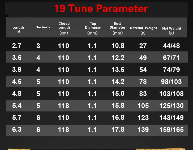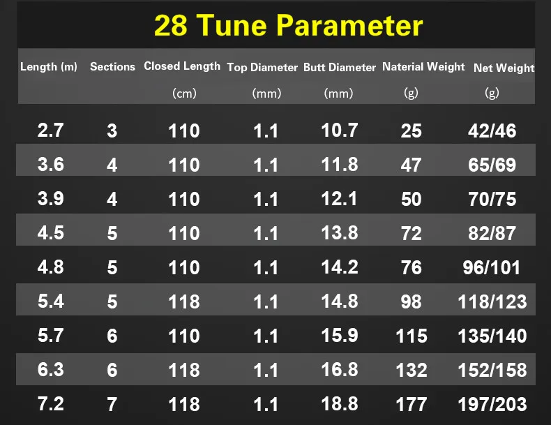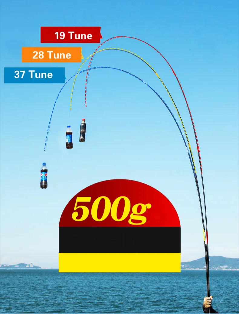 4. no hay diferencia entre los tres tipos de cañas de pescar excepto por la pintura y la dureza. Dureza: 19 Tune 28 Tune 37 Tune