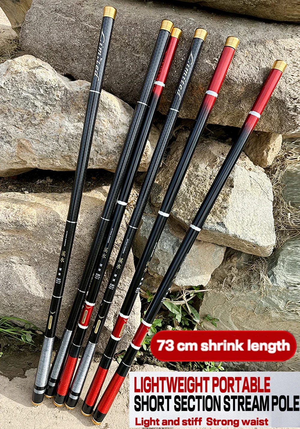 Caña de pescar de fibra de carbono de 3,6-7,2 M, caña telescópica ultraligera dura, varillas alimentadoras de carpa, depósito de poste de lago, aparejos de carpa para estanque