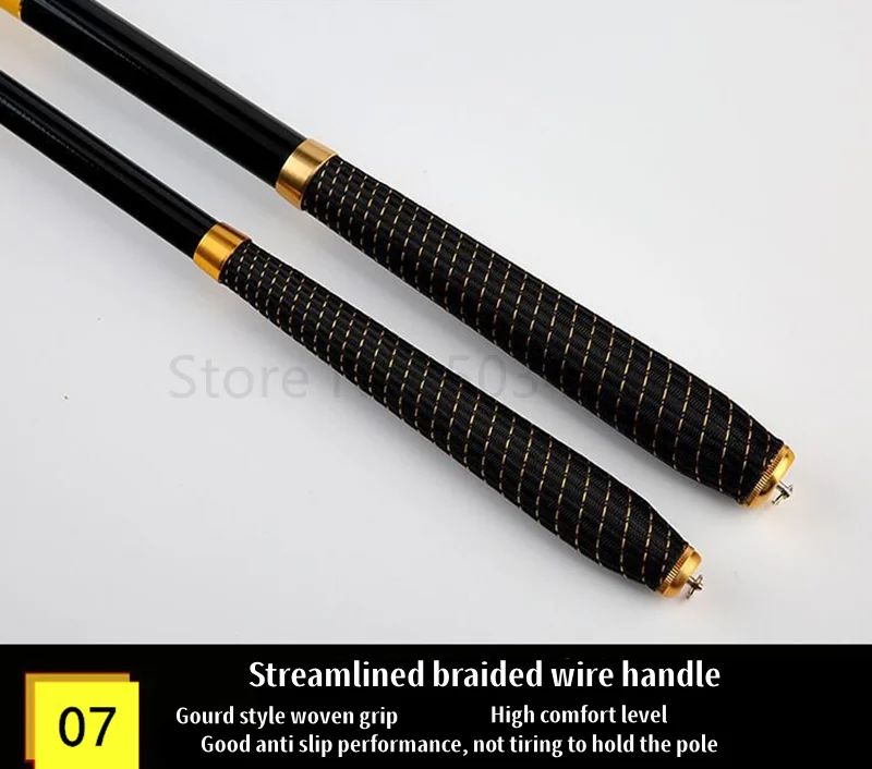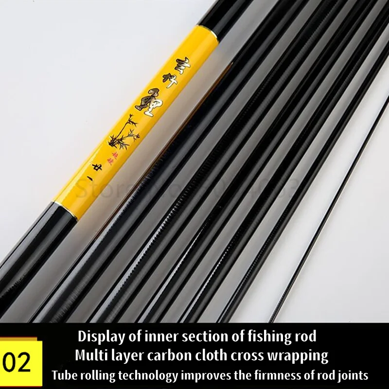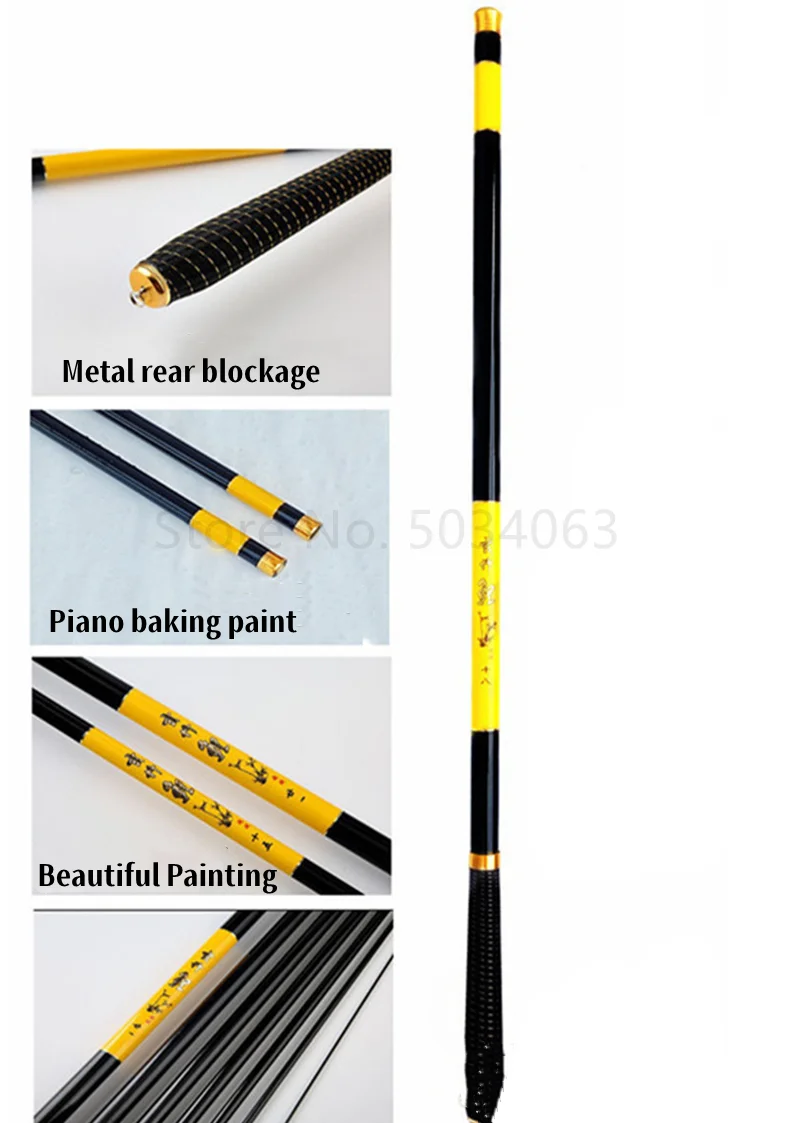 La caña de pescar de fibra de carbono es una caña de pescar de carbono liviana utilizada para la pesca en arroyos, con una longitud de 3,6 m/4,5 m/5,4 m/6,3