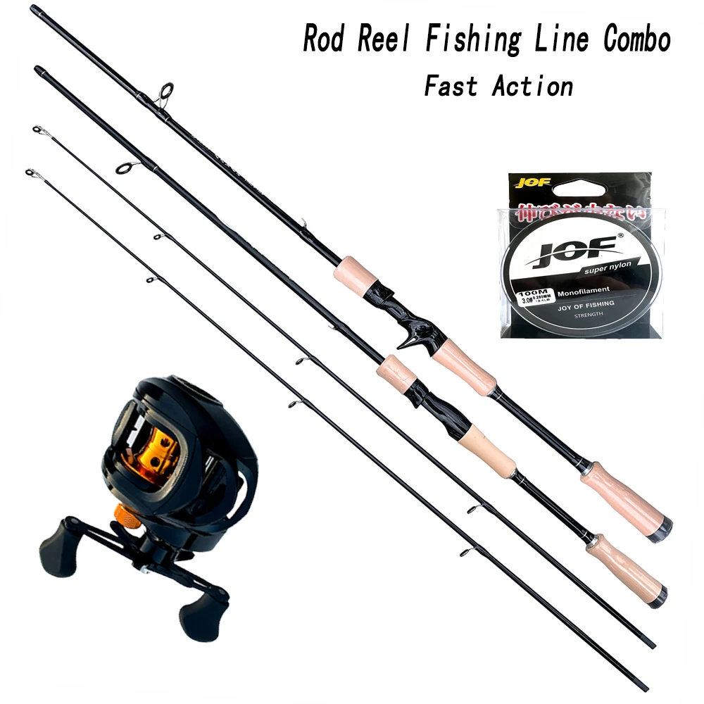 Caña de pescar de fibra de carbono, carrete de Baitcasting con línea de pesca, arrastre máximo de 8kg para Bait8-25g de lubina, Combo 1,65/1,8 m