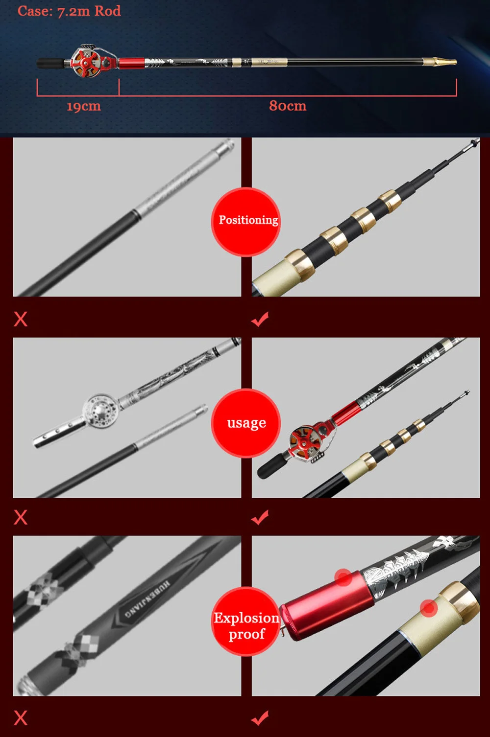 Excelente caña de pescar, ligera y muy práctica. Su principal característica es que el sedal pasa por dentro. Puedes pescar entre arbustos sin miedo a que se enganche. El carrete sí agrega peso extra, pero es simplemente necesario cuando se pesca a plena extensión y cerca de arbustos. Llegó rápido. Lo recomiendo.