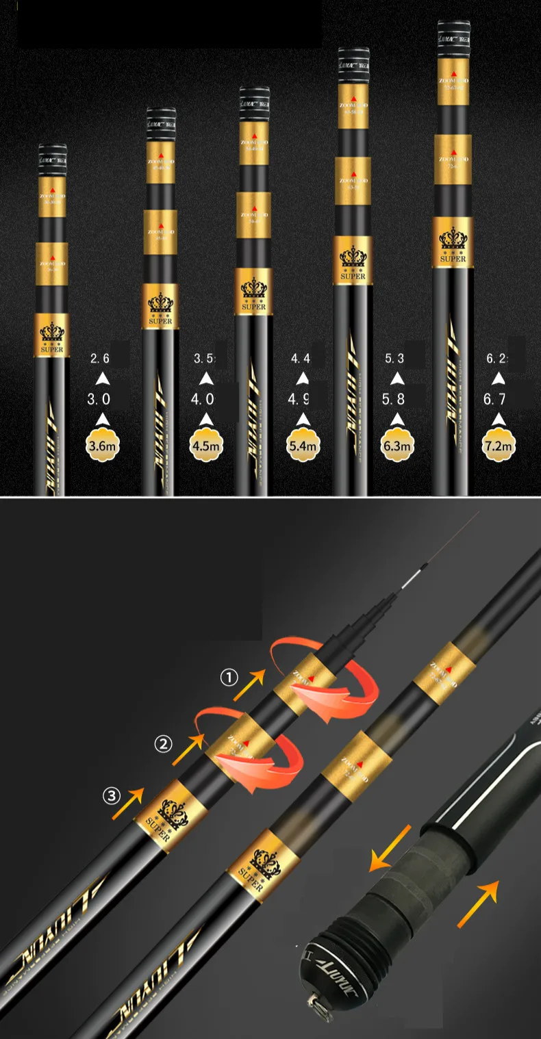 5. La longitud total de la varilla se puede cerrar, por ejemplo, 3,6 m se puede cerrar a 3,0 m y 2,6 m, 4,5 m-4,0 m-3,5 m, 5,4 m -- 4,9 m -- 4,4 m, 6,3 m -- 5,8 m -- 5,3 m, 7,2 m -- 6,7 m -- 6,2 m.