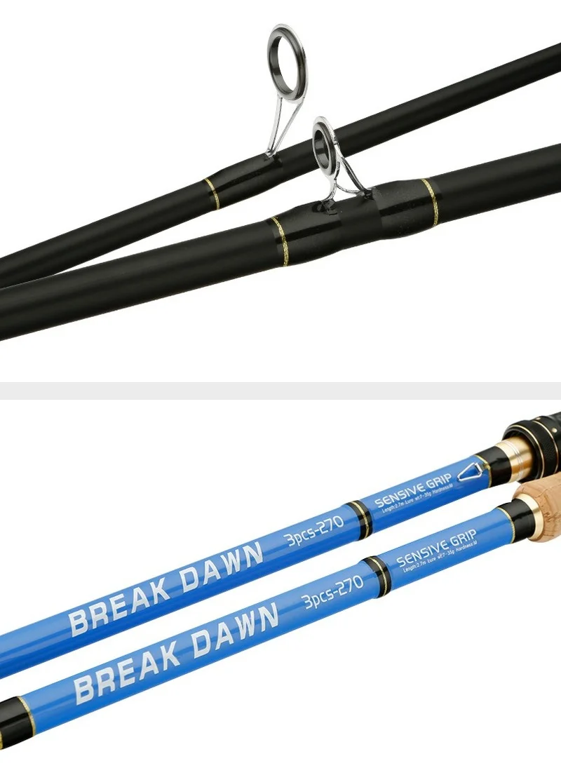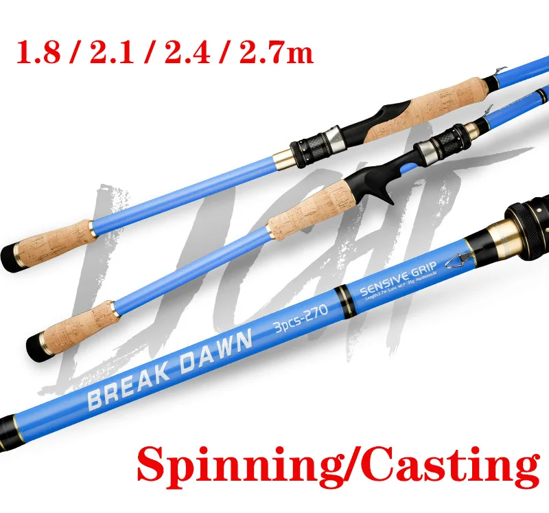 Caña de pescar de fibra de carbono para lubina, caña de pescar giratoria/fundición, 1,8/2,1/2,4/2,7 m, 3 secciones, portátil, rápida, para Río