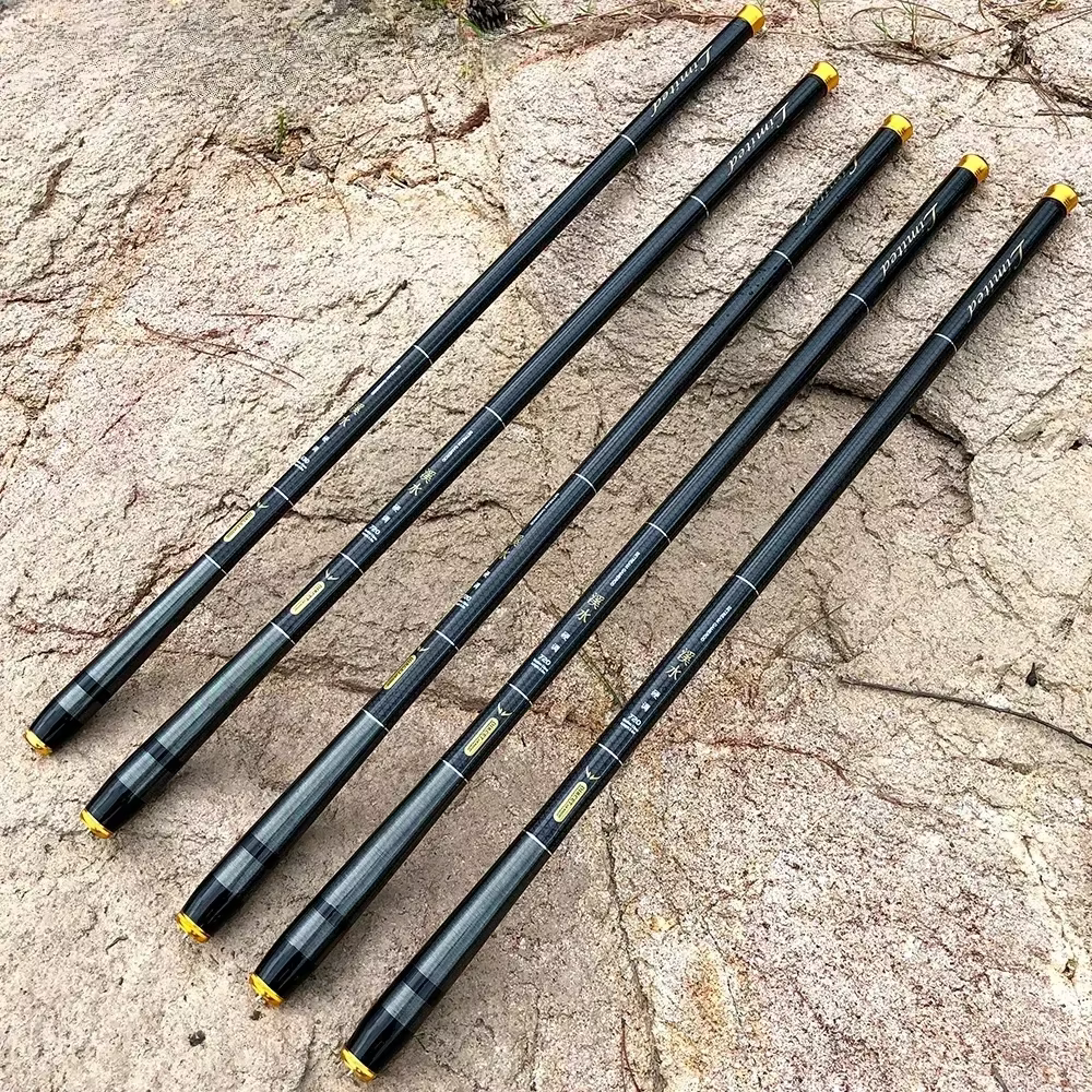 Material: fibra de carbonoTamaño: 3,6 M/4,5 M/5,4 M/6,3 M/7,2 MPeso de la varilla: 115-288GPeso de la línea: alrededor de 1,5-2,0 kgDiámetro superior: 1,0mmAdecuado para: Arroyo, río, lago, estanque de reservaPeces objetivo: carpa, besugo, tilapia y otros peces de agua dulceCaracterísticas1. Tapa de botón de metal, mano de obra fina que destaca la alta calidad de la varilla.2. Mango cómodo. Mango tipo calabaza, antideslizante, no cansado para sostener durante mucho tiempo.3. Punta de varilla trenzada, alta resistencia y buen nudo.4. Conectar estrechamente entre secciones, mejorar la coordinación general y la cintura de la varilla es más fuerte.5. Tela de carbono de alta calidad, envuelta en capas para fortalecer la varilla.Tamaño real Longitud abierta Secciones de longitud cerrada Diámetro superior Diámetro trasero Peso neto3,6 M 3,6 M 73CM 7 1,0 MM 13,0 MM 115g4,5 M 4,2 M 73CM 8 1,0 MM 15,0 MM 144G5,4 M 5,25 M 73CM 10 1,0 MM 18,0 MM 211G6,3 M 5,9 M 73CM 11 1,0 MM 19,0 MM 253G7,2 M 6,6 M 73CM 12 1,0 MM 21,0 MM 288GNOTA: Medición manual. Por favor, permita algunas diferencias menores.PAQUETE INCLUIDO1 ud x caña de pescar