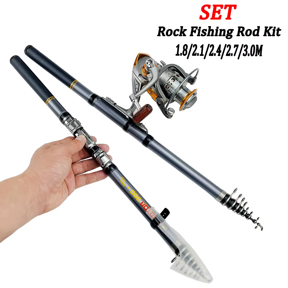 Caña de pescar de fibra de carbono para Roca, Mini carrete telescópico portátil de 1,5/1,8/2,1/2,4/2,7/3,0 M, caña giratoria 5,2: 1, alta velocidad para todas las aguas