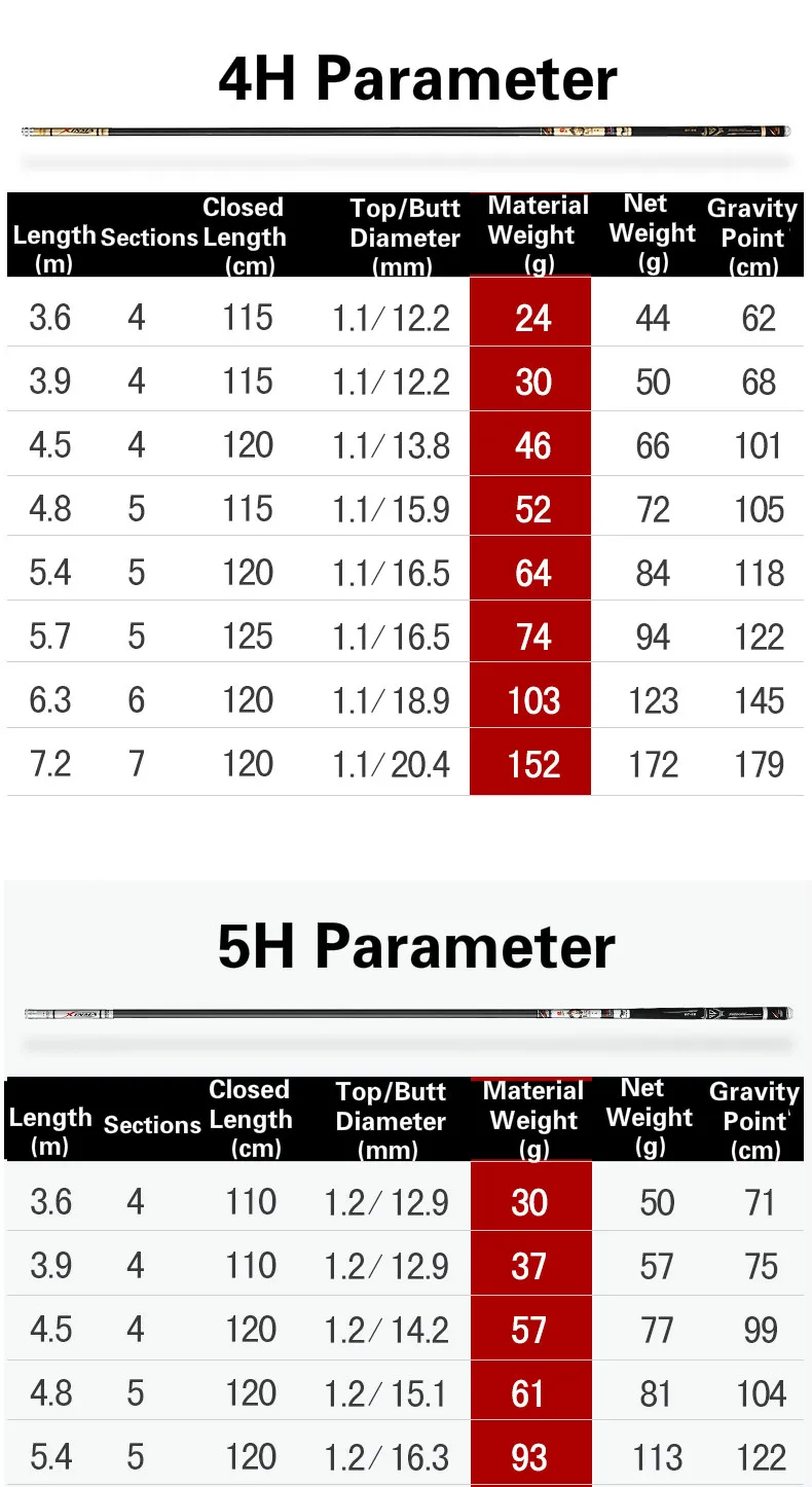 4. no hay diferencia entre los tres tipos de cañas de pescar excepto por la dureza. Dureza: 6H 5H 4H