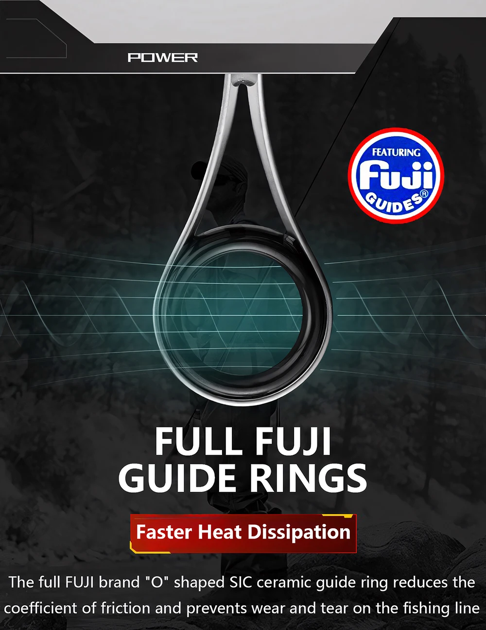 * Anillos de guía: anillos de guía FUJI completos, anillos de guía en forma de "O" de 7 piezas (cerámica SIC)
