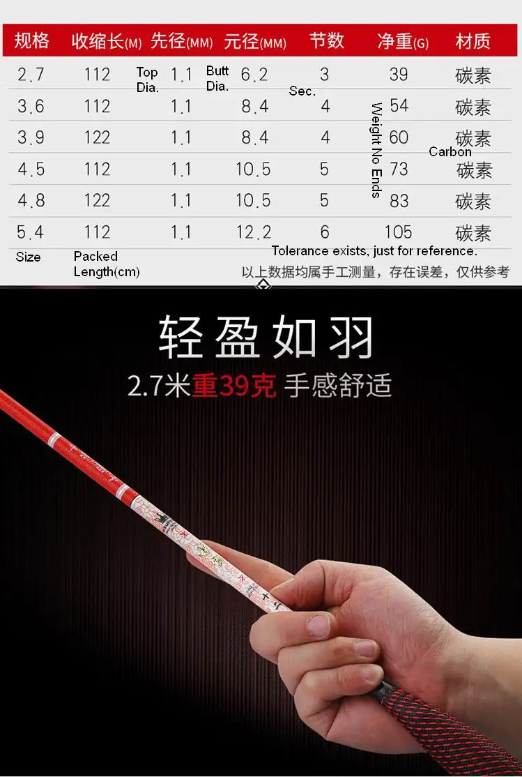 Caña de pescar fina Yauge HERABUNA Crucian, fibra de carbono, medio rápido, 2,7 m, 3,6 m, 3,9 m, 4,5 m, 4,8 m, 5,4 m, ZZ219
